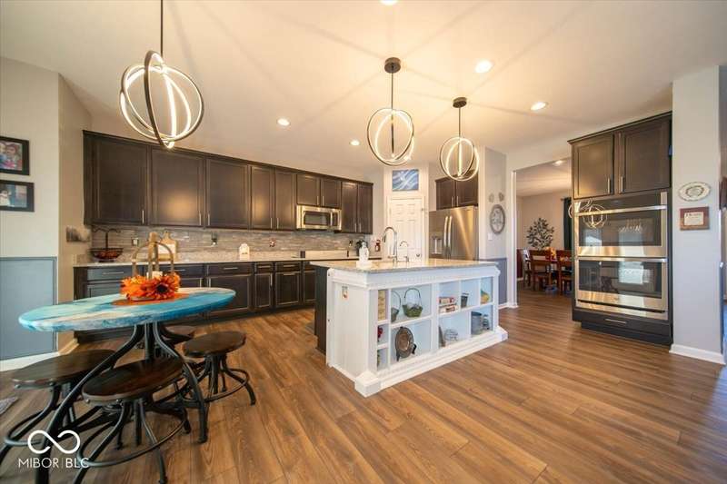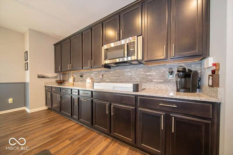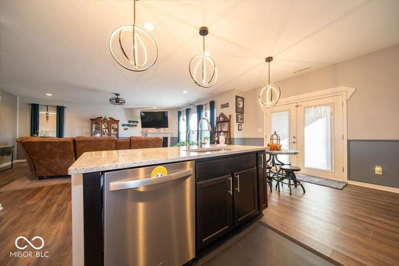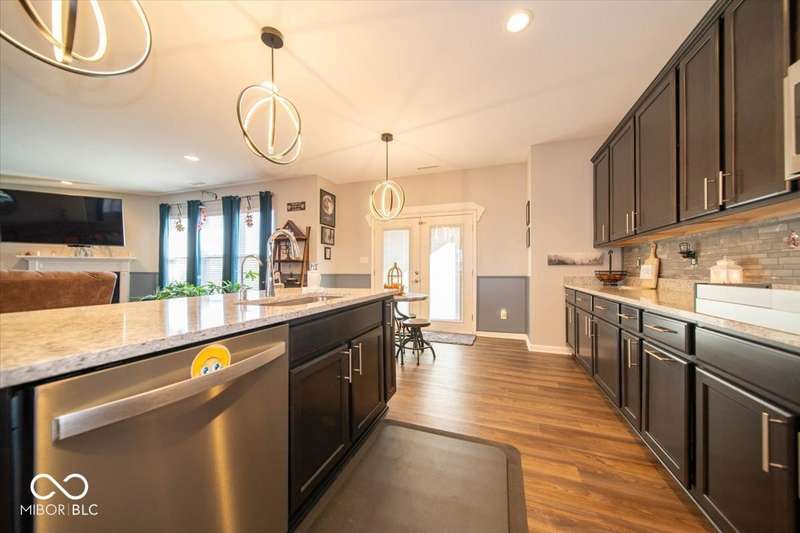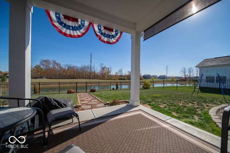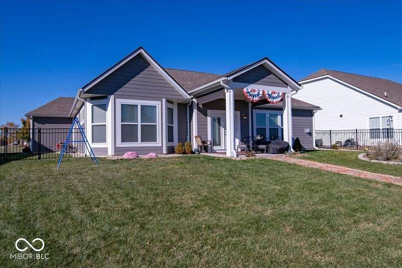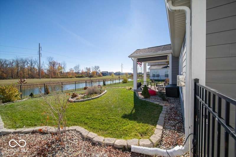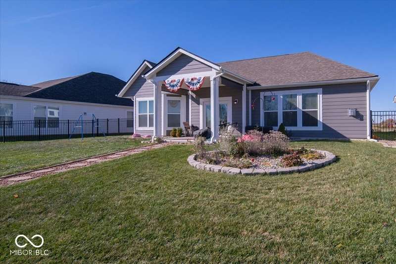 * * * Original owners & only 4 years old! * * * Over $20K in improvements in last 4 years (wrought iron fence, light fixtures, water softener, reverse osmosis, raised toilets, dishwasher, disposal, island shelving, landscaping, flagpole, atrium doors off kitchen and kitchen backsplash) * Open floor plan, 9' ceilings & luxury vinyl plank flooring throughout (except bedrooms) * Huge eat-in kitchen with granite countertops, island with large single-bowl undermount stainless steel sink & decorative built-in shelves, stainless steel appliances, tiled backsplash, built-in double ovens (top oven can be a convection OR a conventional oven!), corner pantry, 5 burner built-in smooth top stove with built-in microwave above * Eat-in kitchen opens to large family room with gas log fireplace with granite surround and hearth * Large primary bedroom with recessed ceiling & large bay window overlooking backyard * Outstanding primary bathroom with raised double vanity with quartz countertop, walk-in ceramic tiled shower spa with bench seat, built-in shampoo shelf & rain showerhead along with 3 body showerheads & a hand wand, raised toilet, large linen closet & spacious walk-in closet too! * Bedrooms 2 & 3 are at the opposite end of the house from the primary bedroom & share a full bath with a quartz countertop, raised toilet & shower tub combo with transom window above! * Laundry room with built-in cabinet off 3 car insulated garage with pegboard divider between bays 2 & 3 as well as built-in shelves and cabinets * 11X12 covered patio with 2 retractable shades off atrium door in kitchen overlooks custom walkway leading to back gate of fully fenced (wrought iron) backyard which backs up to large retention pond with walking path behind it * The 4 wall mounted TV's are negotiable * Please exclude the kitchen refrigerator, washer, dryer & refrigerator & freezer in garage * HOA fee includes club pool, walking paths, playground & snow removal too! (streets only)
