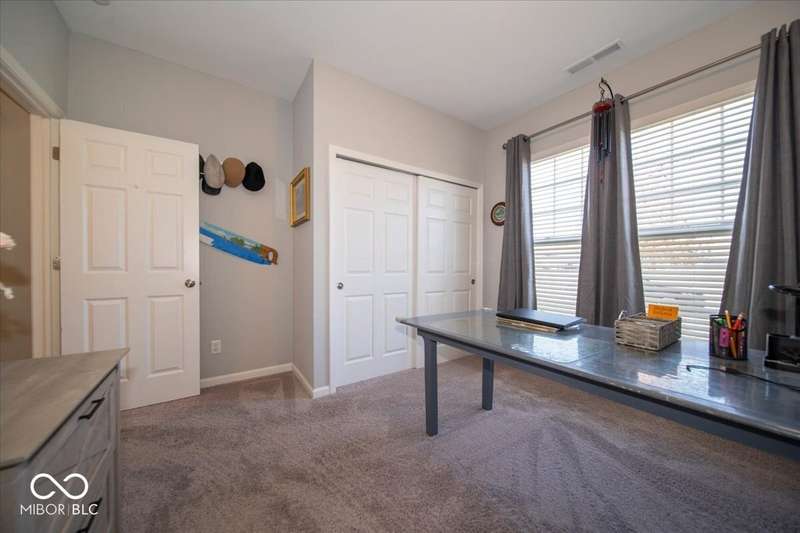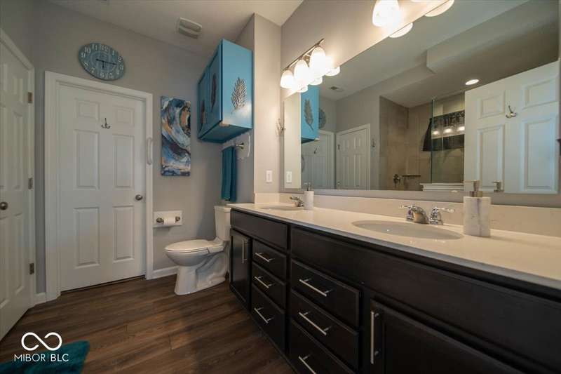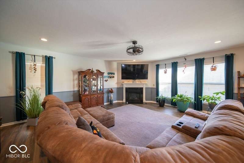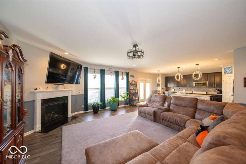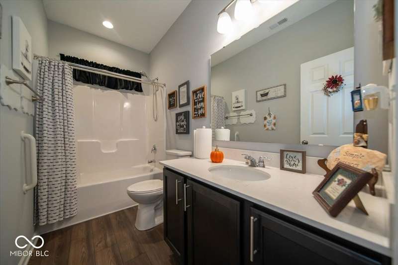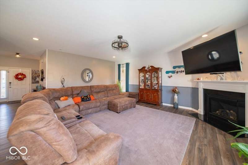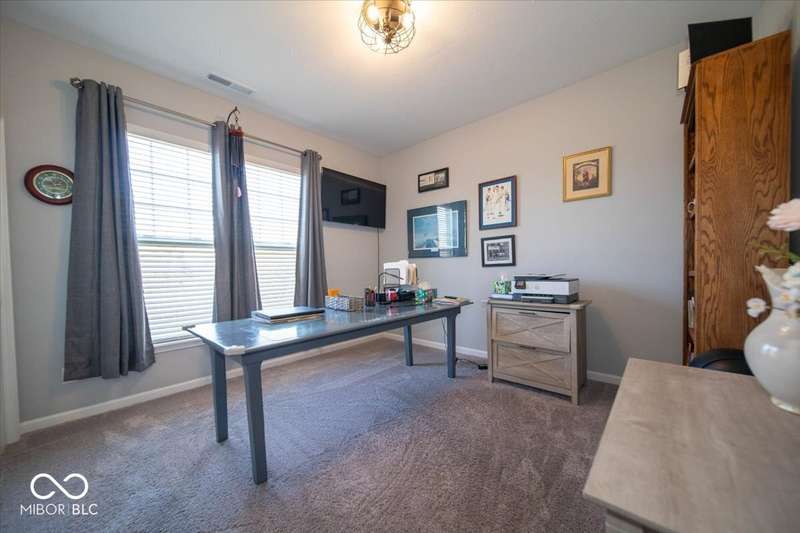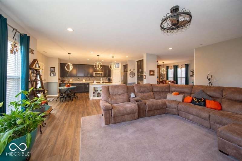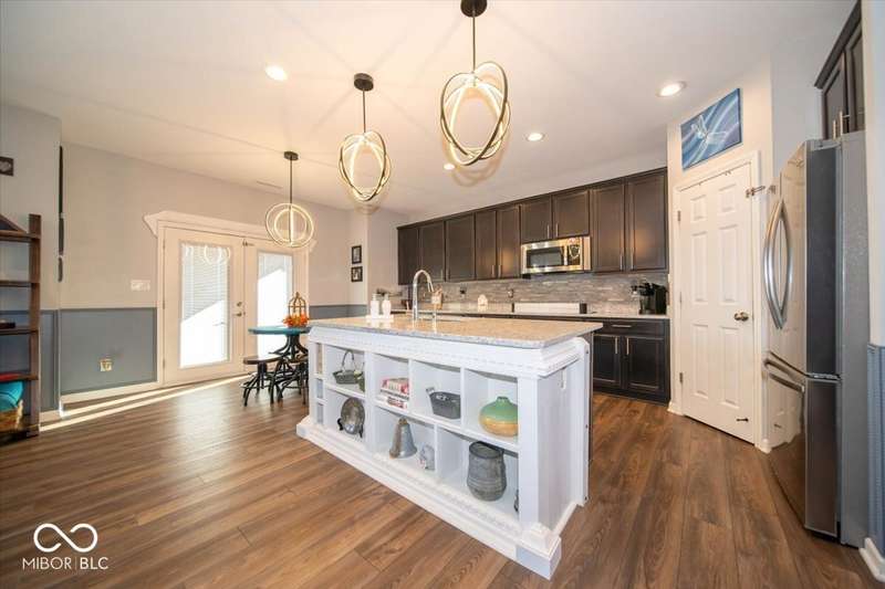 * * * Original owners & only 4 years old! * * * Over $20K in improvements in last 4 years (wrought iron fence, light fixtures, water softener, reverse osmosis, raised toilets, dishwasher, disposal, island shelving, landscaping, flagpole, atrium doors off kitchen and kitchen backsplash) * Open floor plan, 9' ceilings & luxury vinyl plank flooring throughout (except bedrooms) * Huge eat-in kitchen with granite countertops, island with large single-bowl undermount stainless steel sink & decorative built-in shelves, stainless steel appliances, tiled backsplash, built-in double ovens (top oven can be a convection OR a conventional oven!), corner pantry, 5 burner built-in smooth top stove with built-in microwave above * Eat-in kitchen opens to large family room with gas log fireplace with granite surround and hearth * Large primary bedroom with recessed ceiling & large bay window overlooking backyard * Outstanding primary bathroom with raised double vanity with quartz countertop, walk-in ceramic tiled shower spa with bench seat, built-in shampoo shelf & rain showerhead along with 3 body showerheads & a hand wand, raised toilet, large linen closet & spacious walk-in closet too! * Bedrooms 2 & 3 are at the opposite end of the house from the primary bedroom & share a full bath with a quartz countertop, raised toilet & shower tub combo with transom window above! * Laundry room with built-in cabinet off 3 car insulated garage with pegboard divider between bays 2 & 3 as well as built-in shelves and cabinets * 11X12 covered patio with 2 retractable shades off atrium door in kitchen overlooks custom walkway leading to back gate of fully fenced (wrought iron) backyard which backs up to large retention pond with walking path behind it * The 4 wall mounted TV's are negotiable * Please exclude the kitchen refrigerator, washer, dryer & refrigerator & freezer in garage * HOA fee includes club pool, walking paths, playground & snow removal too! (streets only)