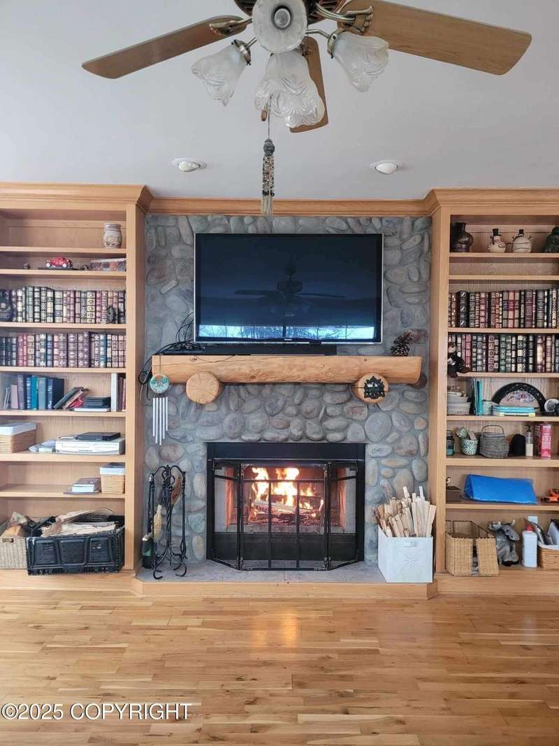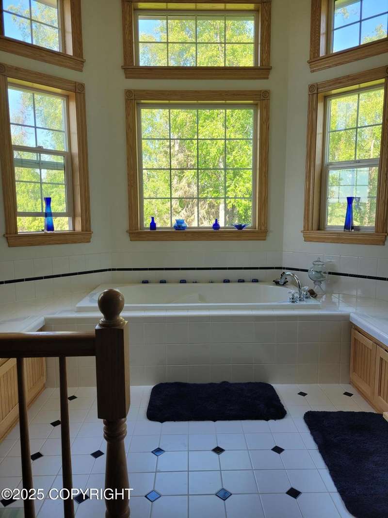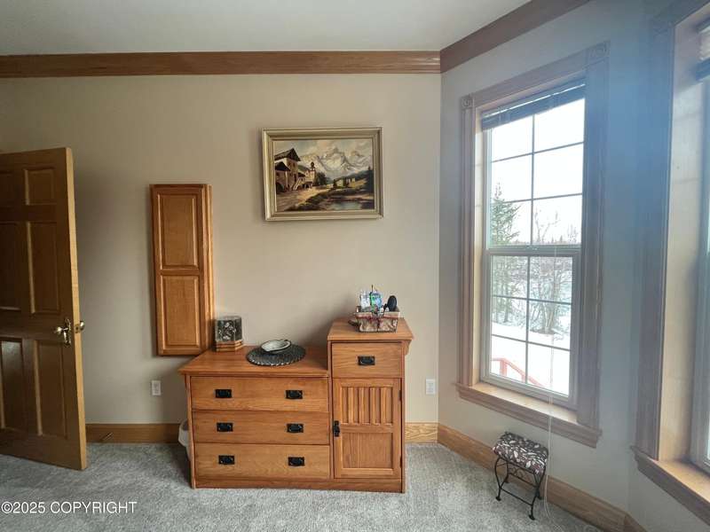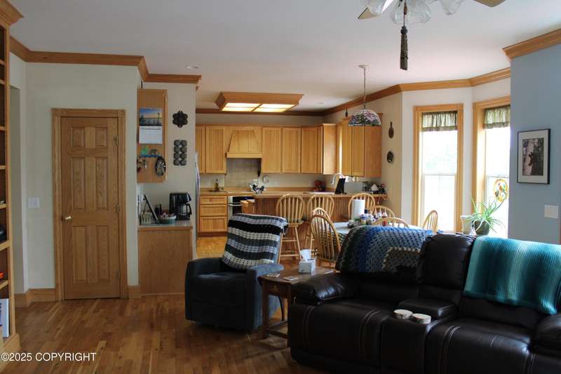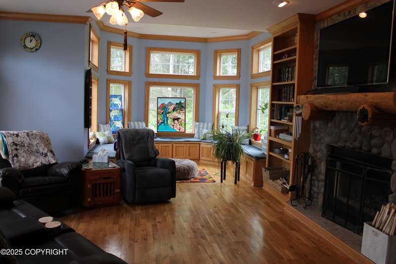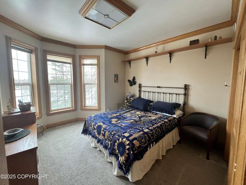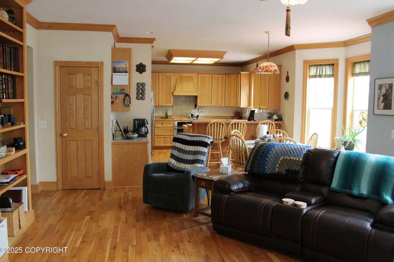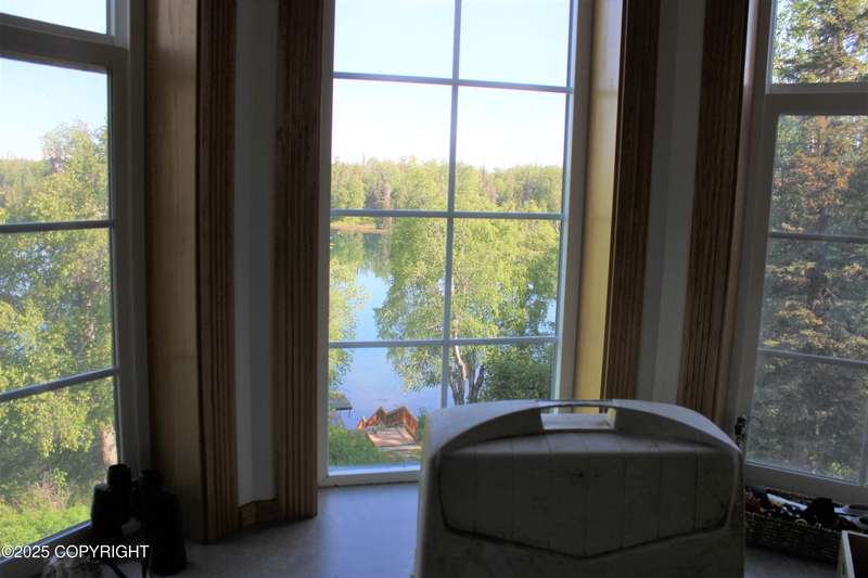 LAKEFRONT on over 6 acres! This custom home has oak crown molding, hardwood floors, vaulted ceilings, in-floor heat, and huge windows! The primary bedroom has a walk-in closet and shower. There is a new dishwasher, water softener, exterior paint, and living room carpet. The home has a 5*+ energy rating, a circle driveway, a huge 832ft back deck w/jacuzzi, and the garage is wired 220V! The oversize BONUS room has custom built-ins throughout. Outside has a wonderful flowering perinneals plus Raspberrys, Rhubarb and strawberries.