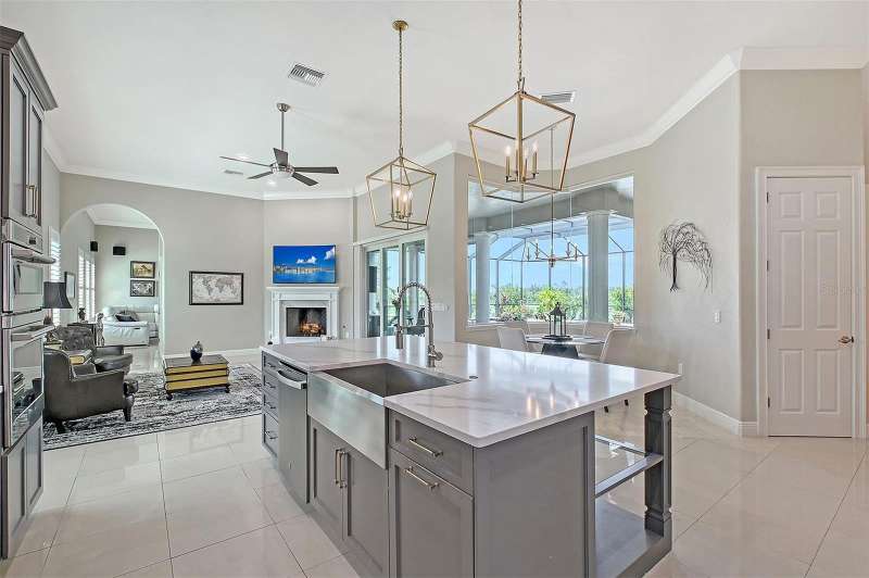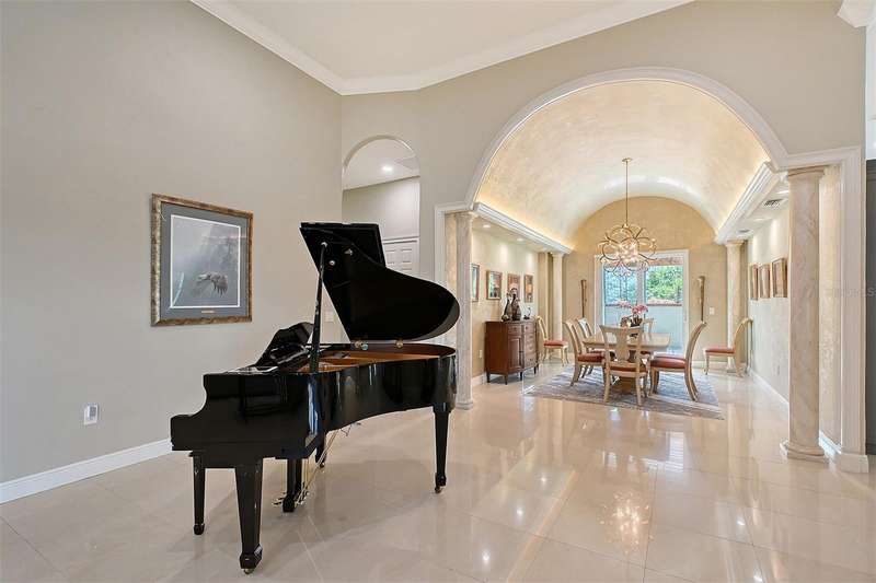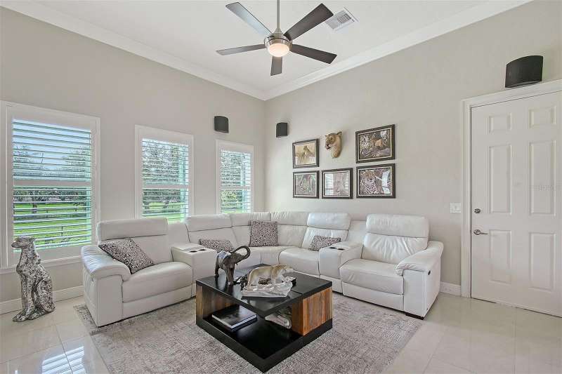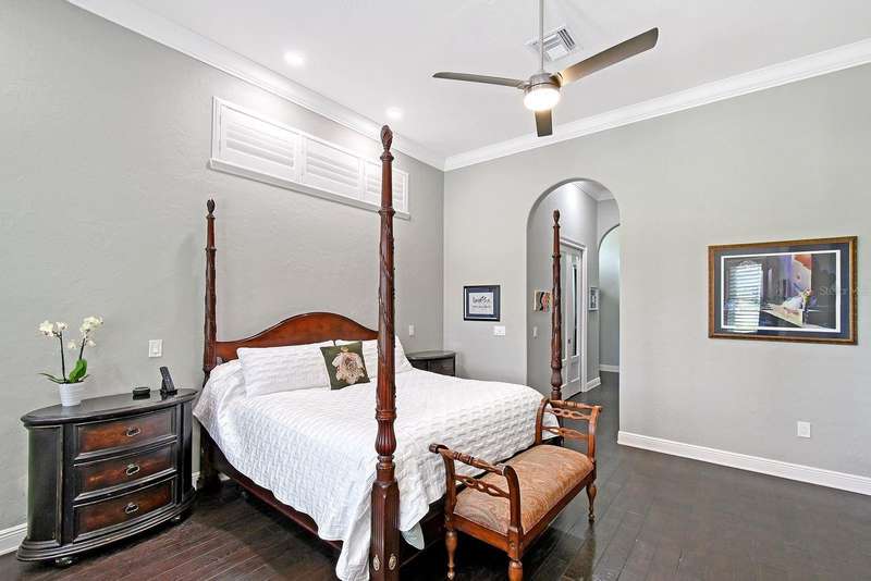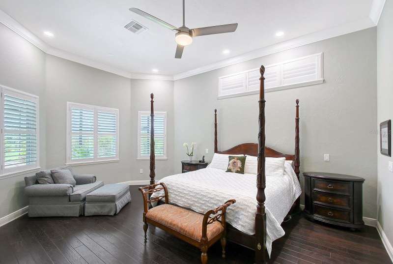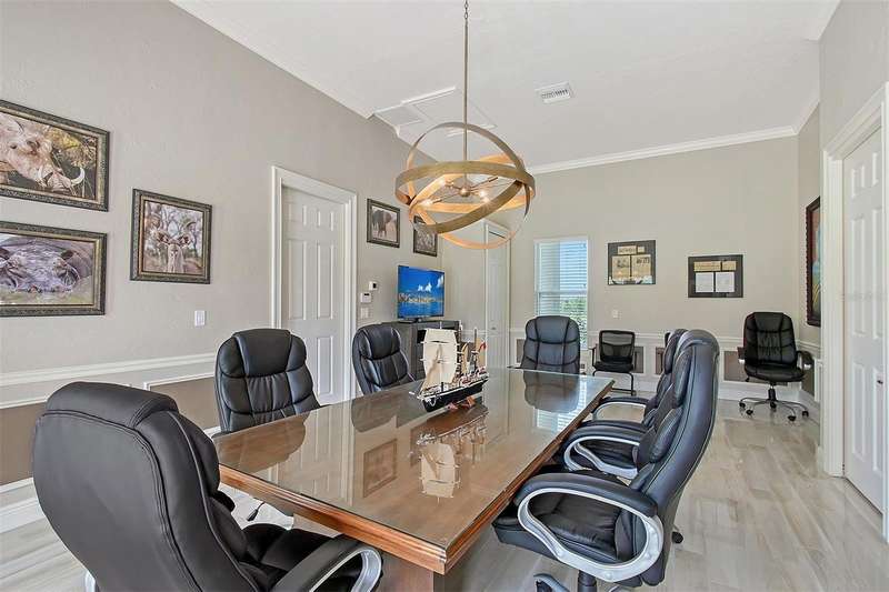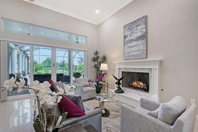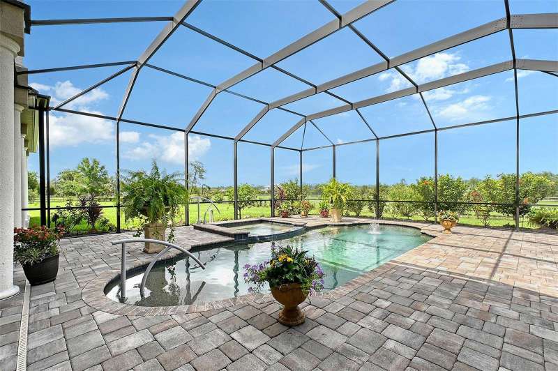 Visualize what quiet luxury looks like. It starts with passing through the electronic gate, down the long, tree-lined driveway, nestled between lighted ponds with twin fountains, leading towards this stately 5,000+ sq ft home on over 5 acres. The entry courtyard features a welcoming custom bronze fountain and a brick-paved portico leading to a double French door entry. Sweeping into the living room with 12-foot ceilings, tile floors, and a fireplace, you'll pass the private office with a built-in desk and shelves. The formal dining room features a majestic coved ceiling and French doors to a side patio. The modern kitchen with stainless appliances offers an enormous amount of cabinet and counter space, opening to a breakfast nook and family room with a second fireplace. A media room, tech closet with Wi-Fi tower, and a half bath are steps away. Beyond that is a private in-law suite currently used as an office with a conference room/living room, bedroom, private bath, kitchenette, and private entry. Also located on the main floor is a luxurious primary bedroom suite with 2 generous closets and an ensuite bath, as well as a 2nd bedroom with an ensuite bath, a hobby room, and a laundry room. Located up the sweeping staircase are 3 bedrooms, 2 bathrooms, a small lounge area, a large storage room, and a covered balcony. The screened-in pool offers two large lounging spaces and stone pavers overlooking the lush pasture out back. In 2020, the entire property underwent an extensive renovation, including, but not limited to, a new roof, plumbing, multiple HVC systems, new pool and spa, brick pavers, concrete driveway, multiple new fountains, fresh landscaping and sod, all windows older than 2018 were upgraded, electrical wiring replaced, all new flooring, all bathrooms and total kitchen were remodeled, giving this 5,000+ sf home an effective age of 2020. The owner also added a 24-kw whole-house generator, a reclaimed water irrigation system covering the entire 5-acre property, and a 500-gallon propane tank. This is an amazing home at an incredible price!