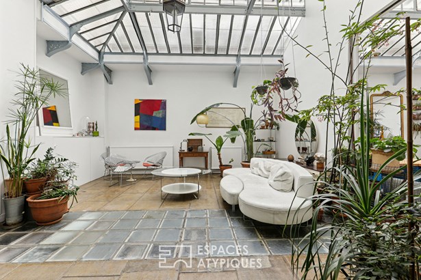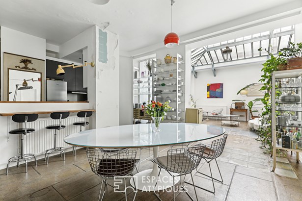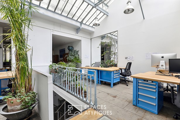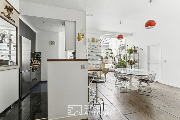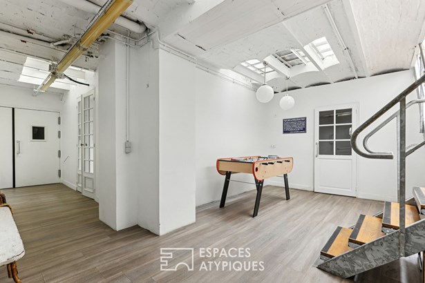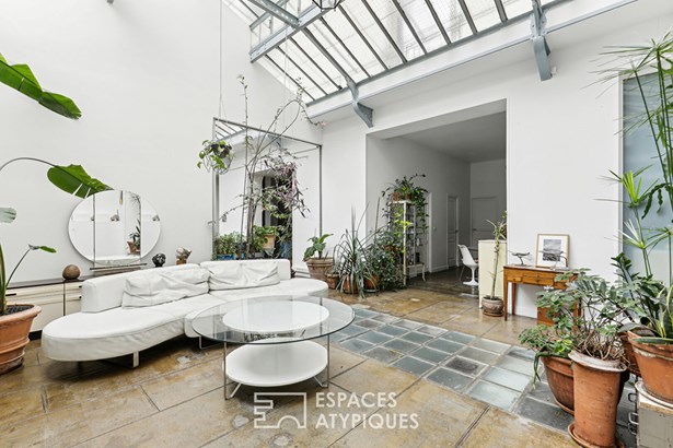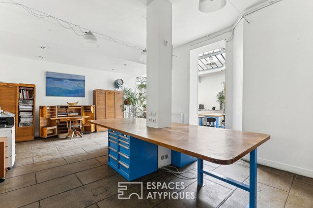 Accessed from a quiet, tree-lined interior courtyard, this renovated former factory is spread over two levels, combining industrial volumes with contemporary amenities.