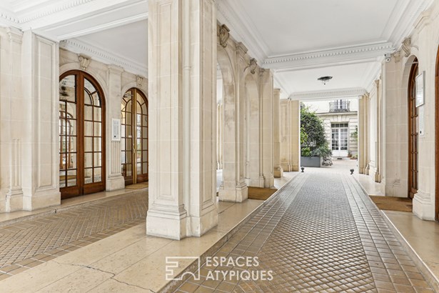 Located in the 9th arrondissement of Paris, a short walk from Square d'Anvers, this 379.66 sqm (352.89 sqm Carrez law) real estate complex is housed in a freestone building dating from the early 20th century.