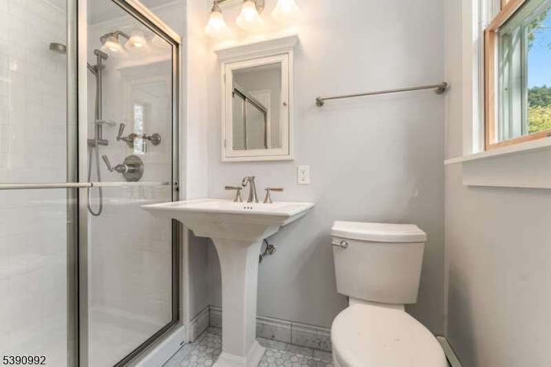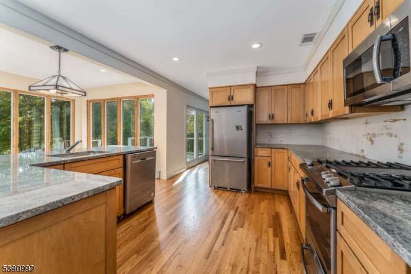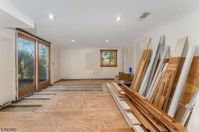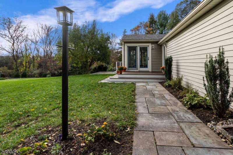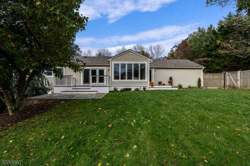 Quiet and convenient, spacious and cozy, you can have it all. Versatile ranch w walkout lower level with serene, fenced back yard in a great Cul de sac neighborhood. The approximate 1600 sf first floor features an upgraded kitchen with granite counters and stainless-steel appliances adjoining two sunny eating areas and a huge mudroom. Three full upgraded bathrooms boast premium fixtures and natural stone surfaces. Quality materials also include real hardwood floors, Anderson Thermopane windows, handcrafted wood doors, a recently lined masonry fireplace and two recent composite decks. The 800-sf walkout lower level is a great guest suite or home office featuring a family room, a study, two additional rooms plus a laundry room and a utility room. Sun brightens every room as you look out on mature landscaping adjacent to 97 acres of township owned property- mostly woods . Minutes from commuting and North Hunterdon High School. Natural gas recently installed for cooking and available for heating conversion. Central air plus desirable baseboard heat for all seasons. There is some unfinished work in the home, and some materials will be included in the sale- seller will provide a list. Please check w your lender- not every lender will finance. This is an estate owned property and will be sold AS-IS. Buyer to verify sf - 100 sf difference depending on source.