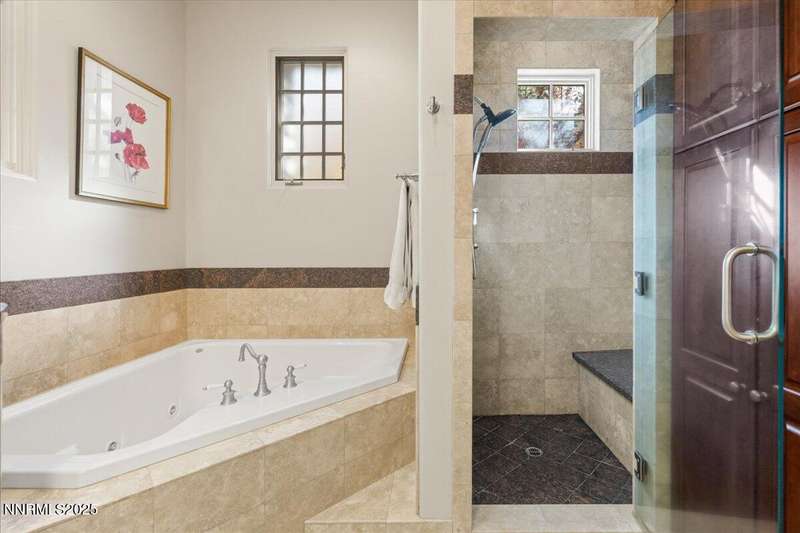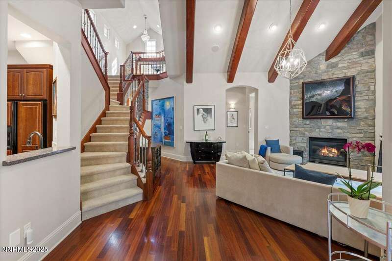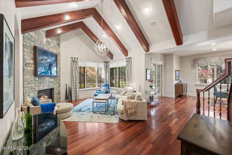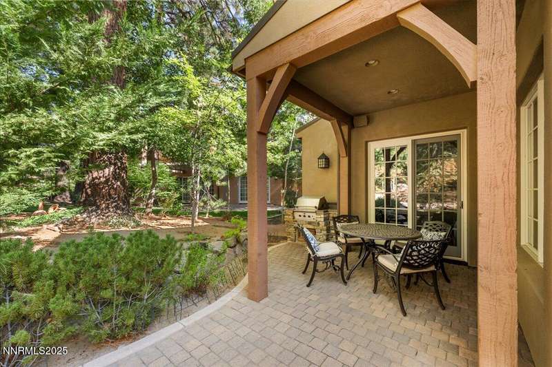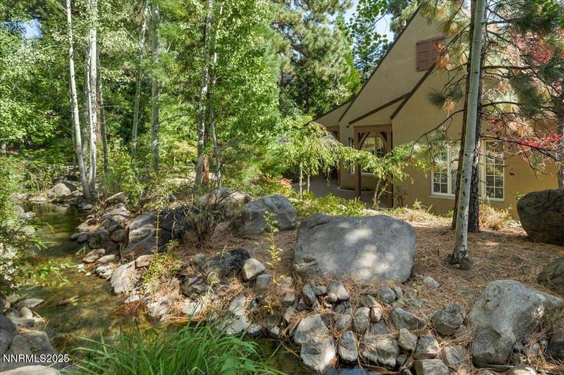 Nestled within the picturesque enclave of The Cottages in Montreux, this upscale residence offers a unique blend of charm and convenience, completed with "Come-and-Go-As-You-Please" living. The thoughtfully designed floor plan seamlessly integrates comfort and elegance. The main level features a spacious Primary Suite, along with a Great Room, Dining Area, Laundry, Pantry, and Half Bath. Vaulted ceilings and a striking floor-to-ceiling stone fireplace create a sense of grandeur and tranquility. On the upper level, you'll discover two specious Guest Bedrooms, a Full Bath and a cozy Loft space, perfect for relaxation or study. The interior is adorned with solid Knotty Alder Doors, elegant Brazilian Cherry solid hardwood, and Travertine flooring. Step outside to a beautifully landscaped exterior with a paver patio, built-in fire pit, and gas BBQ that invite you to enjoy evenings under the stars. The soothing sounds of a nearby seasonal creek and pond enhance the serene ambiance, making this outdoor space a true sanctuary for relaxation and entertainment. Additional features include a pro-actively installed radon mitigation system, central vacuum, water softener, copper gutters, and resilient R-50+ insulated concrete form walls that contribute to the home's energy efficiency. The Cottage HOA takes care of all exterior maintenance and landscaping, allowing you to relish a low-maintenance lifestyle. Included with the purchase is a full Montreux Golf Membership (Buyer to pay the transfer fee). Montreux Golf & Country Club, is renowned for its breathtaking Jack Nicklaus Signature Championship Course (Par 72), world-class clubhouse amenities, extensive nature trails, and a lifestyle of leisure and recreation. With 24/7 manned security, you can enjoy peace of mind in this exclusive community, conveniently located just 15 minutes from Mt. Rose Ski Resort, 20 minutes from Reno-Tahoe International Airport, and a mere 30-minute drive to the stunning shores of Lake Tahoe.