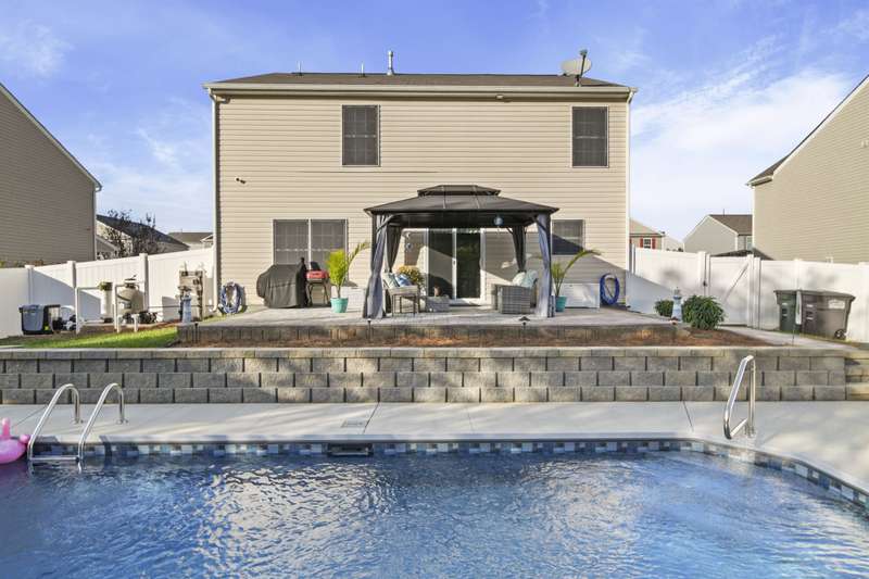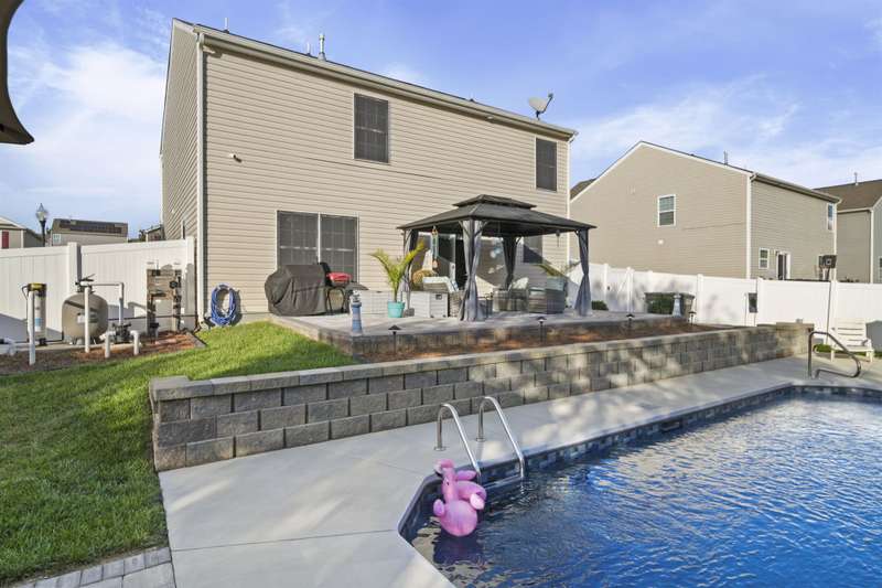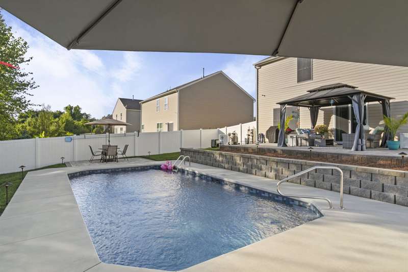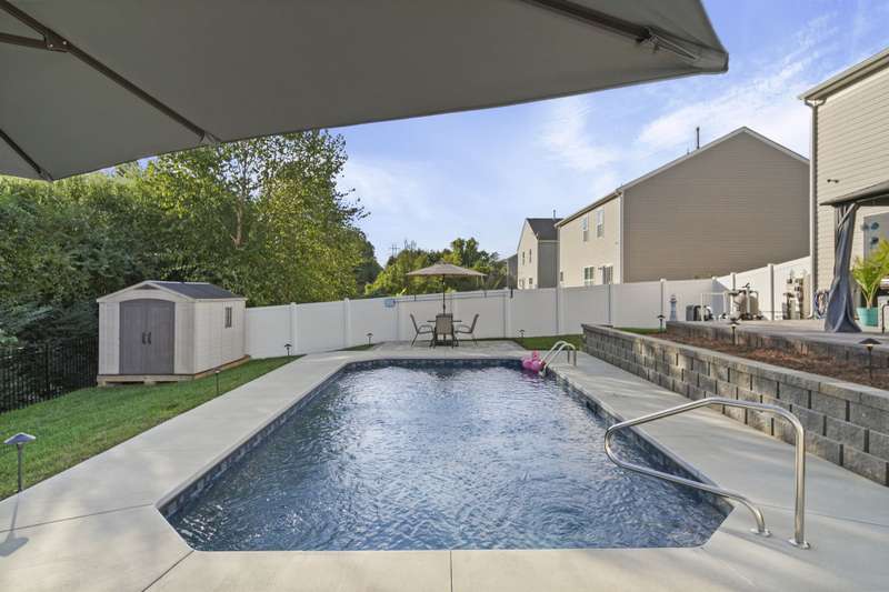Step inside this immaculate, light-filled home and prepare to be charmed! The open-concept living space creates a wonderful flow, perfect for entertaining or relaxing. Modern eat-in kitchen with stainless steel appliances, and beautiful laminate wood flooring throughout the main floor offer convenience and style. Upstairs you can retreat to a spacious primary bedroom, featuring an ensuite bathroom and a large walk-in closet with plenty of storage space. Down the hall, you'll find two additional bedrooms, offering flexibility for guests, a home office, or a growing family. While the interior is beautiful, the show stopper is found outside! Imagine spending your afternoons by your private pool, set within a secure, fenced-in backyard, lined at the back by mature trees. The pool is heated, so you can enjoy it for many months of the year. The large patio is the ideal spot for summer BBQs, outdoor dining, or enjoying your morning coffee. This backyard is ready to be your favorite escape. Proximity to Crowders Mountain allows for easy access to weekend hikes and stunning views. Commuting is also easy with quick access to to I-85, and you're just minutes from everything Gastonia has to offer, from dining and shopping to parks and entertainment. Don't miss the chance to make this lovely property yours!