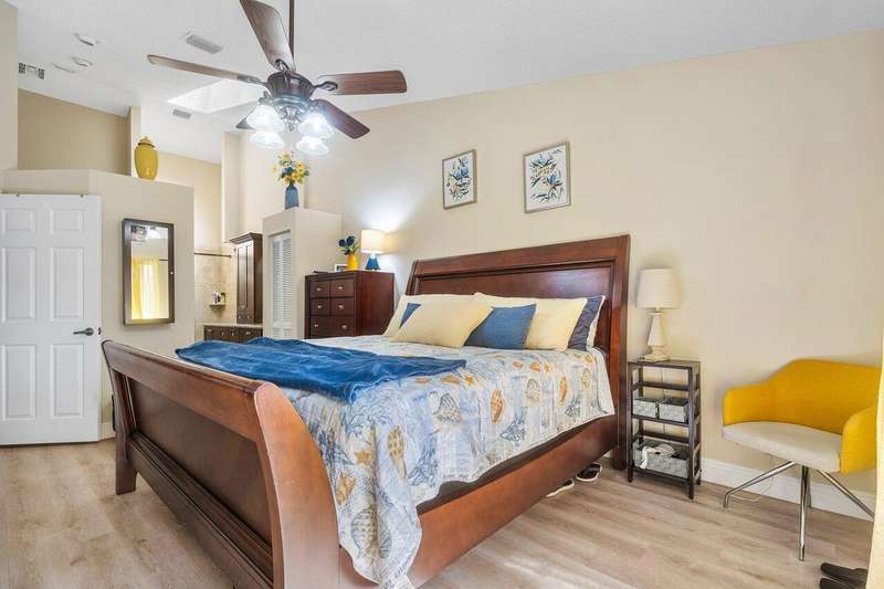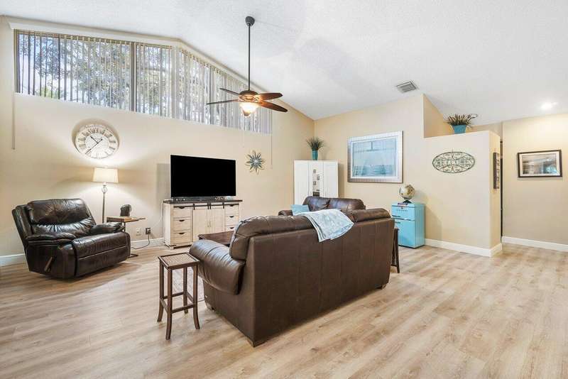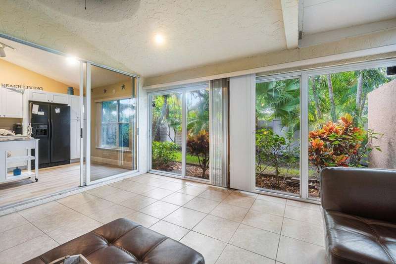 Located right across from the huge newly renovated and heated community poolAvail for 2026 Season Starting Jan 15th to April 15th in the highly desirable golf community of PGA National! This is one of the nicest homes in Heather Run, and has everything you could want! Beautifully decorated & updated single-story end unit with an open floor plan and soaring ceilings! Kitchen was recently renovated as well as vinyl wood flooring throughout. Split floor plan for privacy, Two gorgeous baths, granite countertops, newer washer/dryer, new tankless water heater, over sized enclosed covered patio for an extra 300 sq/ft of living space, and much more! 3rd bedroom is being used as a home office with high-speed internet and printer. Perfect winter retreat