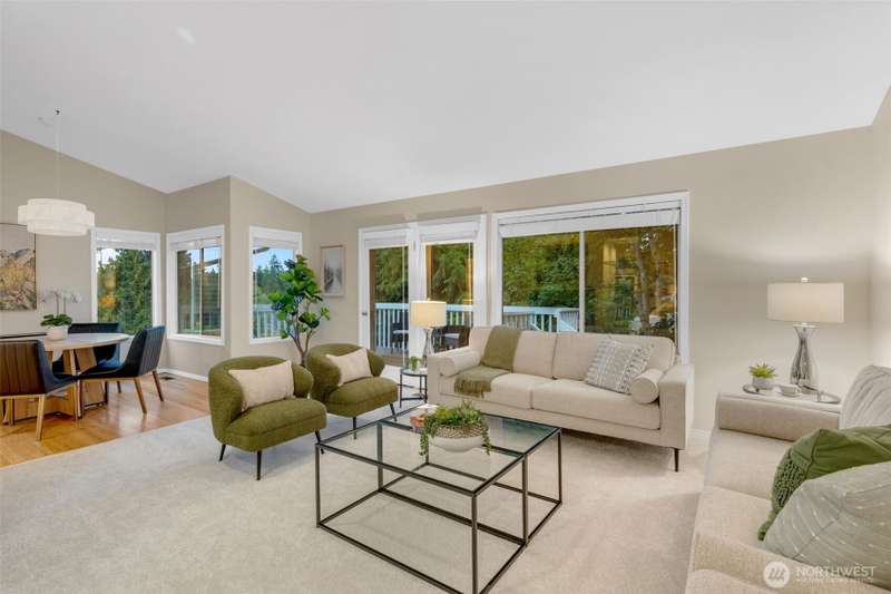Chateau Woods is a charming community near Woodinville’s dining and wineries. This updated one-level home features vaulted ceilings, a two-sided gas fireplace, hardwood floors, new carpet, remodeled kitchen and baths, and a 2-car attached garage. The deck offers peaceful views, and the HOA maintains nearby parks and trails for easy, low-maintenance living.