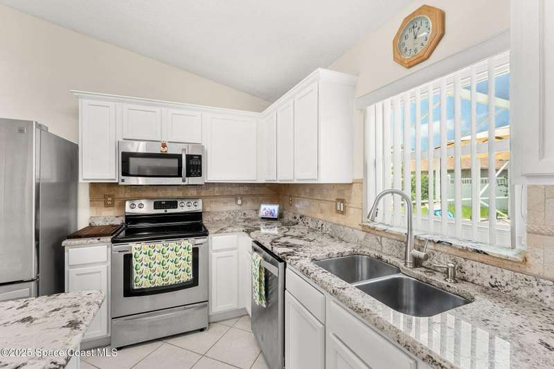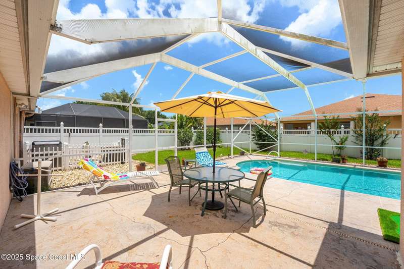 Immaculate POOL home in West Melbourne with a brand new 2025 roof and A/C!! This beautifully maintained 3 bedroom home features a screen enclosed in ground pool, perfect for year round Florida living. Located minutes from shopping, schools, dining, and hospitals. Enjoy formal living dining and living rooms, a dedicated office, and an open kitchen with granite counters, center island, stainless steel appliances, and breakfast nook. Vaulted ceilings throughout the main living areas add to the spacious feel. The primary suite boasts a large walk in closet. IMPACT windows, inside laundry with cabinetry, and lush landscaping complete the picture. Saddlebrook is an established HOA community with scenic sidewalks and a welcoming neighborhood feel, low HOA fees. This home is move in ready with everything you need to relax and entertain in style.