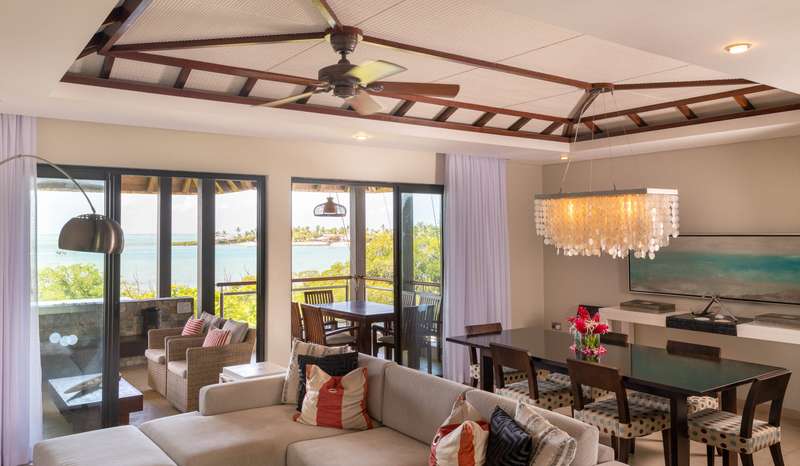 Set amongst 213 hectares of tropical gardens and surrounded by an Ernie Els designed 18-hole golf course, Anahita Golf & Spa Resort offers a range of activities such as exclusive beach experience on its two beaches, boutiques, Personal fitness center, tennis and padel courts, kids and teens club, water sports center and the Anahita Spa. Located on the top floor of a two-storey residence, this superb 181 m² apartment offers one of the most breathtaking views of the estate on the lagoon and Île aux Cerfs, while being closely located to the estate's restaurants, golf clubhouse, and departure pontoon to the exclusive Anahita Beach on Île aux Cerfs. The elegantly decorated and recently renovated property features 2 en-suite bedrooms, including a master bedroom, opening on the terrace with sea view. The American kitchen adjoins the convivial living and dining room as well as a spacious covered terrace with outdoor lounge area and plunge pool - an ideal spot to make the most of the surrounding environment.