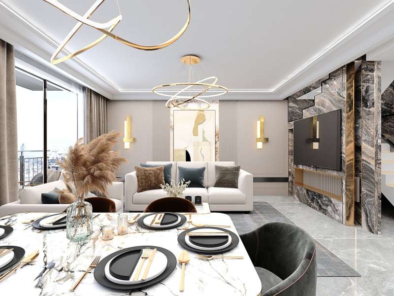 The flats with chic designs in Demirtas, Alanya are located 2.7 km from the beach, 20 km from Gazipasa Airport, and 21 km from Alanya district's center.