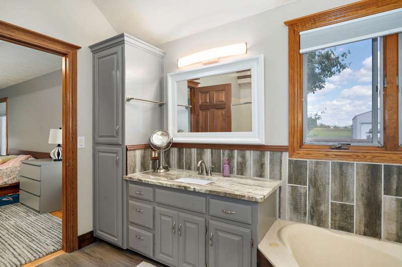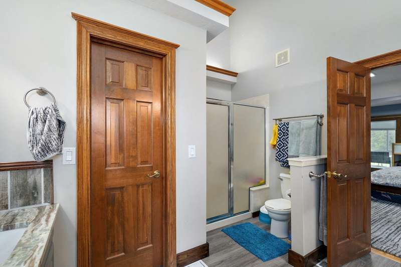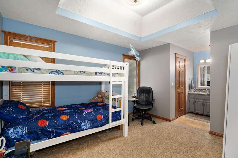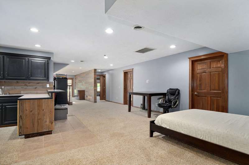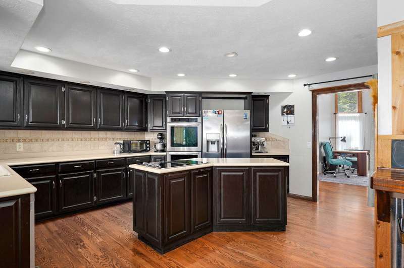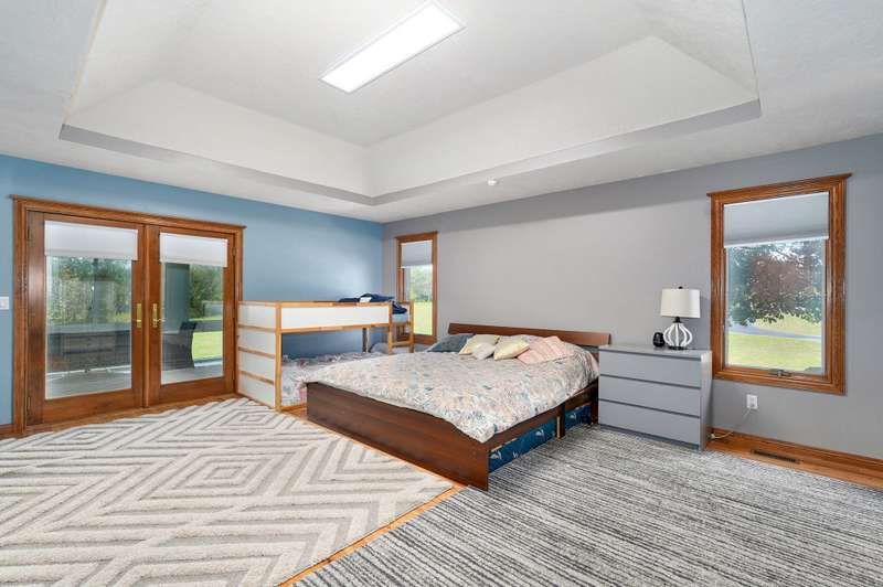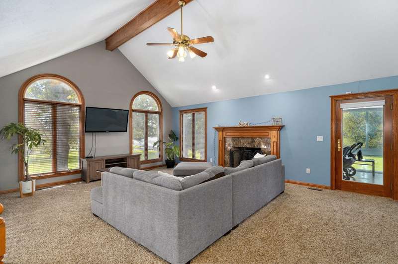 Beautiful all brick, 4 bed, 3.5 bath, walkout basement home with 2 oversized shops on 5 private acres! With over 4,750 finished square feet, this home is very spacious and features 3 living areas, oversized bedrooms with walk-in closets, spacious kitchen, formal dining room and lots of storage space. Enjoy the beautiful sunsets in the sunroom next to the master suite or coffee on the large deck off the back of the kitchen. Some additional features include a geothermal all electric heat and air, woodburning fireplace in living room, pellet stove in basement central vacuum system, water softener, wired for alarm system and fire alarm system, hot tub and much more. The shops are spacious enough for all your big toys! 60x50 and 40x40 with concrete floors, power, 15' ceilings, 12' RV door. No restrictions and no HOA. Schedule your private showing today!
