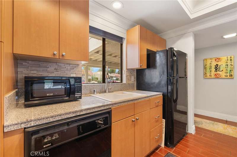 Step inside to discover an open-concept layout with vaulted ceilings, creating an airy, spacious feel that's perfect for entertaining or relaxing. The seamless indoor-outdoor flow leads to a private patio, where you can enjoy al fresco dining while overlooking the serene lake, desert landscape, and visiting ducks and birds.