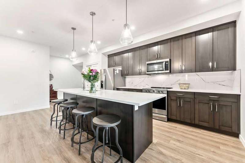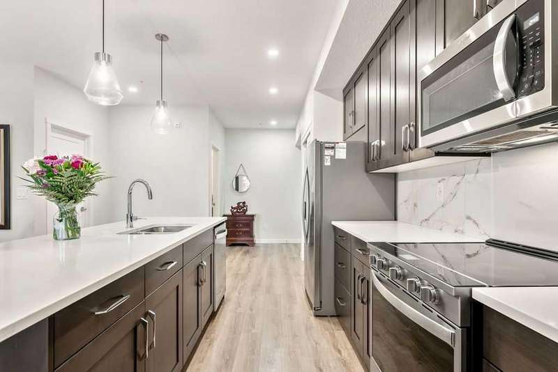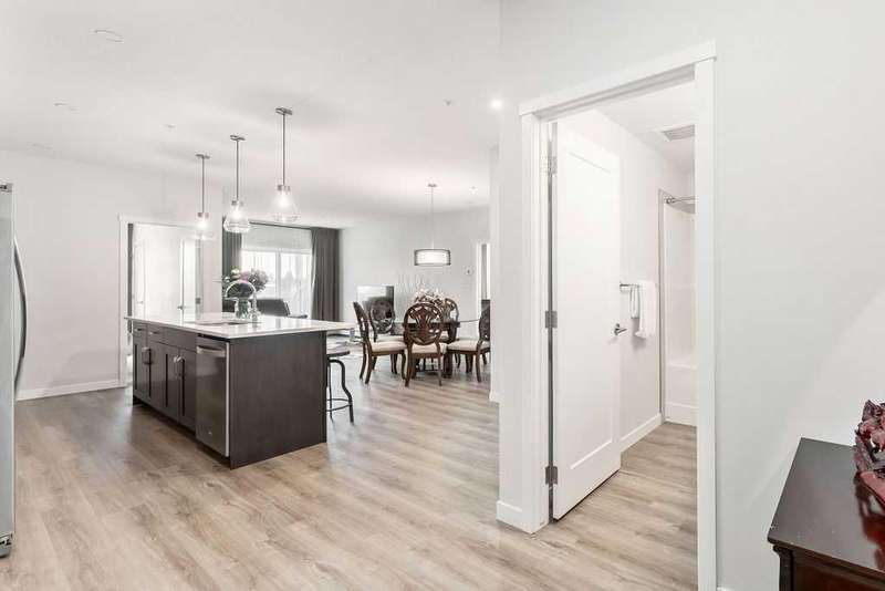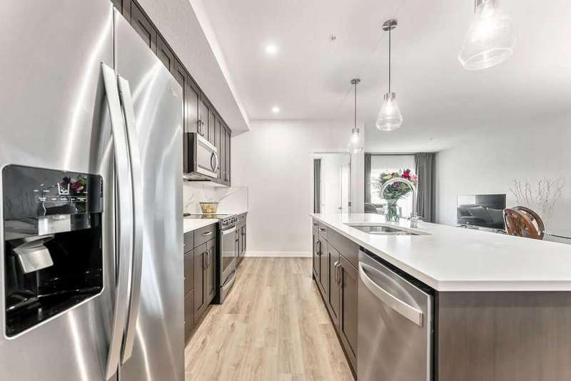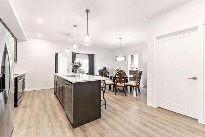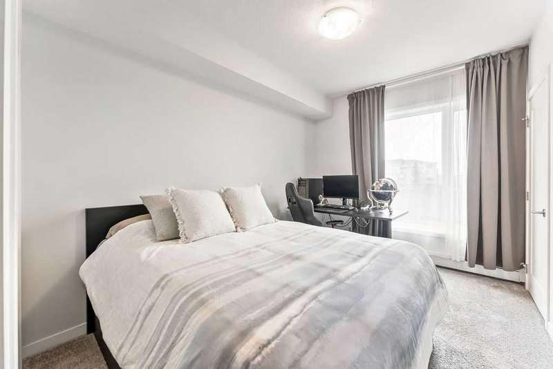 Welcome to the Penthouse at Fish Creek Exchange, where luxury meets practicality. This stunning 2 bed, 2 bath, PLUS 2 UNDERGROUND PARKING stalls suite combines modern style with seamless functionality. The entertainer's kitchen boasts an oversized island with seating, top-tier stainless steel appliances, and elegant stone countertops. The open-concept design, complemented by impressive ceiling height, creates a warm and expansive ambiance. There's ample room for a large dining table, perfect for hosting family and friends without sacrificing space. Enjoy the convenience of in-suite laundry with a stacked washer and dryer and great utility room storage. The primary bedroom features a private ensuite and an oversized walk-through closet. This penthouse includes TWO titled, side-by-side underground parking stalls, plus a storage locker. This vibrant community offers a variety of on-site amenities, including an F-45 fitness centre, Montessori school, and hair salon. The building itself boasts impressive features like a dog wash station and bike storage room. You'll appreciate the convenience of MacLeod Trail and the C-Train for an easy commute downtown. Situated next to Fish Creek Park, residents can explore miles of trails perfect for hiking, biking, or simply immersing in nature's beauty across the park's rolling hills, grasslands, and forests.