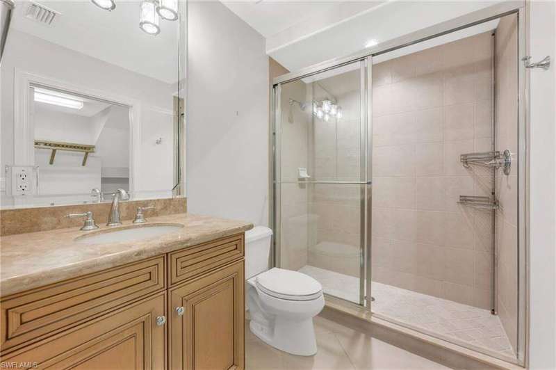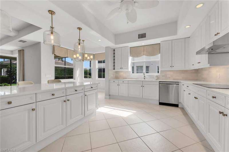 Nestled in the prestigious Vineyards community, this stunning 1st Floor Coach Home in the exclusive Avellino Isles enclave is the epitome of elegance and modern comfort. Featuring three spacious, all-en-suite bedrooms with private baths, a den and a total of 3 1/2 baths, this condo offers the perfect blend of functionality and luxury. Step into the exquisite foyer, where attention to detail becomes immediately evident, with large ceramic tile and luxury vinyl plank flooring that flow seamlessly throughout the home and all walls are freshly painted. The split-bedroom layout provides privacy, while the dedicated office, complete with custom French doors, offers a quiet retreat for work or study. The heart of the home is a beautifully designed kitchen featuring stainless steel appliances, quartz countertops, a breakfast bar, and a separate dining area. Adjacent to the kitchen, the expansive great room impresses with a built-in bar and beverage cooler, perfect for entertaining. A zero-edge slider is the finishing touch to the great room and opens effortlessly to the large screened lanai, where entertaining meets relaxation. The primary suite is a true sanctuary, with volume ceilings, custom cabinetry in the oversized walk-in closet, and a luxurious master bath featuring dual sinks, a separate tub and shower, and private water closet. The screened lanai is equipped with electric storm shutters for peace of mind, while the home's impact-resistant doors and windows provide added security. Additional features include a whole-house surge protector, a Halo allergy system on the AC, room darkening shades in all bedrooms, a 70 gallon Hot Water Heater, Trane smart home control system and a security system. Enjoy the convenience of a two-car attached, side entry garage and the exceptional amenities just steps away, including the Avellino Isles clubhouse, exercise facility, and resort-style pool and spa. The expansive pool deck, equipped with grills and a bar area, is perfect for hosting gatherings-all included in your HOA fees. Centrally located, this property is minutes from Naples' pristine beaches, world-class shopping, fine dining, Mercato, and easy access to I-75. This home is a rare find in a lush, sought-after community where luxury and convenience come together seamlessly. Additionally, Vineyards offers optional golf and social memberships to take advantage of their newly redesigned award winning golf course, resort style pools, clubhouse, restaurant/bar and exceptional exercise and spa facility. This Coach home is a must see!