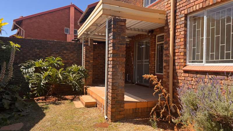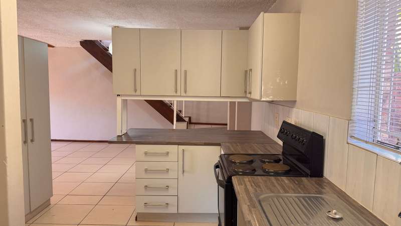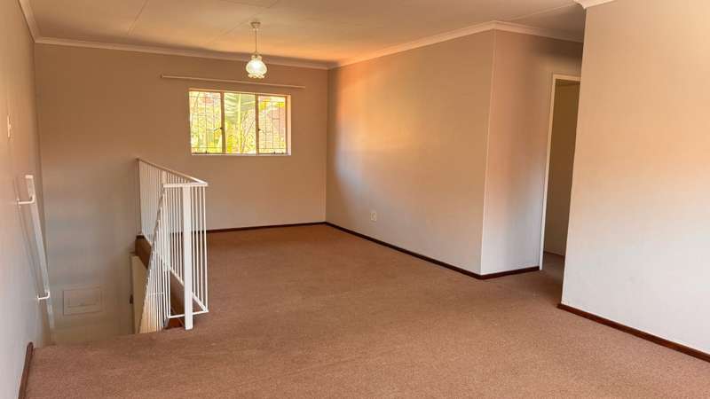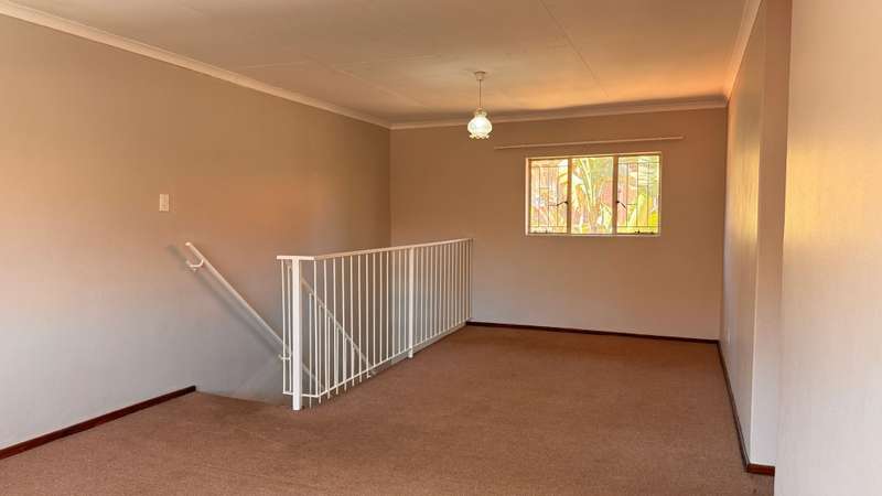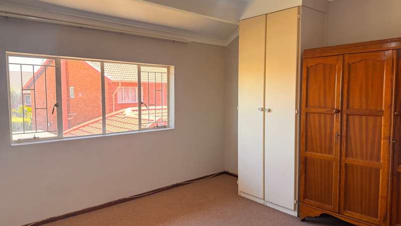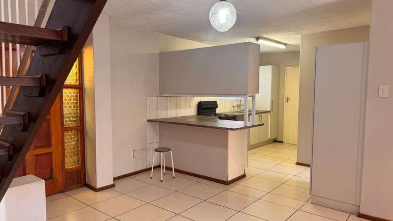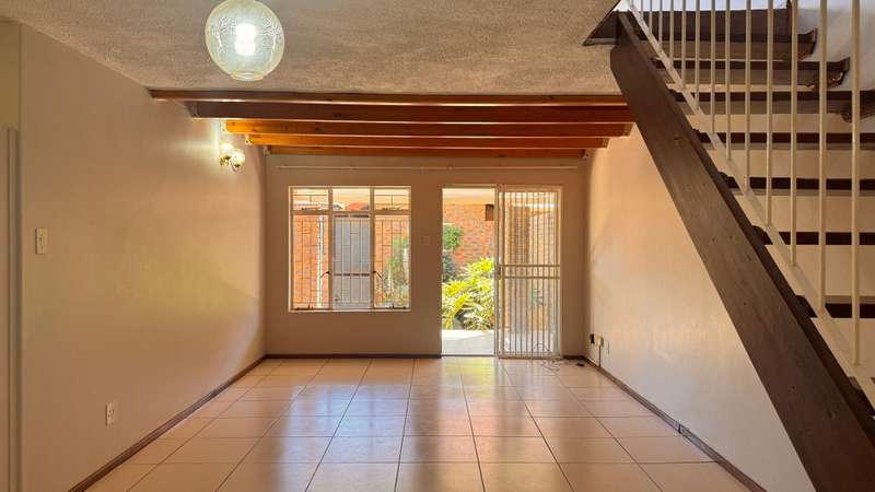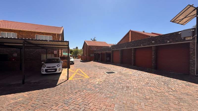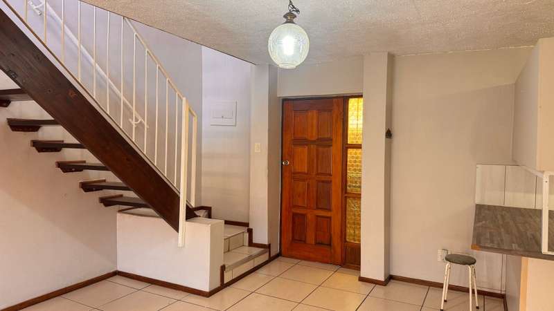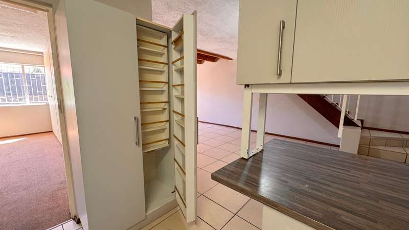 This well-sized 3-bedroom, 2-bathroom duplex is situated in the popular La Paradise complex in Garsfontein. The layout includes a large open-plan lounge and dining area with lofty ceilings, plus an upstairs living space ideal as a TV room or study. The main bedroom is located downstairs with an en-suite bathroom featuring a bath, basin, and toilet. Upstairs, two additional bedrooms share a second bathroom with a walk-in shower. All bedrooms have built-in cupboards. The functional kitchen is fitted with melamine cupboards, Formica countertops, an upright stove, and offers space for a double-door fridge and top loader washing machine. A breakfast nook and a storeroom add convenience. A covered patio with a louvered roof opens onto your own private, walled garden—ideal for outdoor relaxation. The unit also includes a double enclosed steel carport and features good security with electric fencing, and burglar bars Located near top schools such as Woodhill College and Hoërskool Garsfontein, and just minutes from shopping destinations including Boardwalk Lakeside, Dis-Chem Centre, and Atterbury Décor Centre.