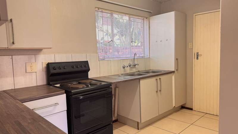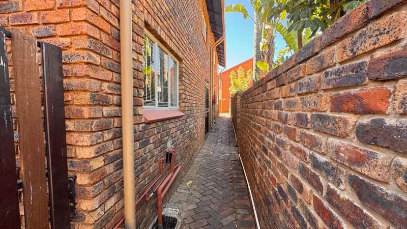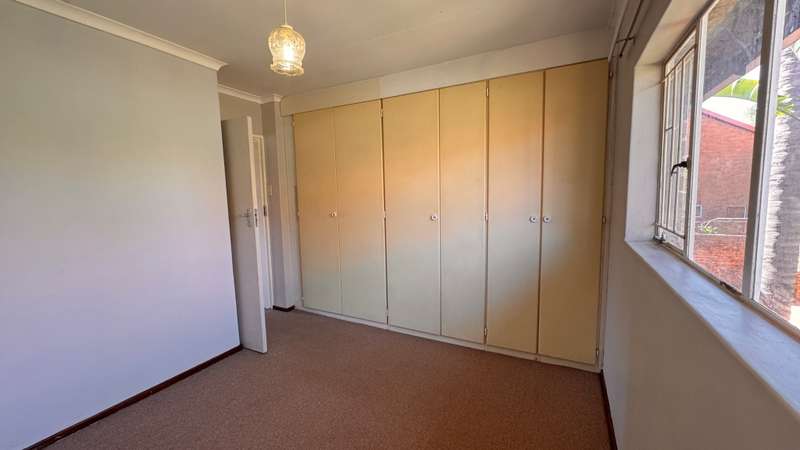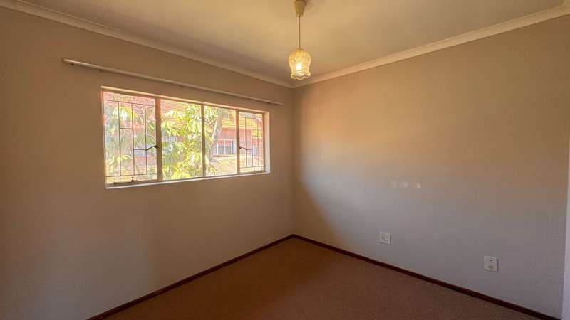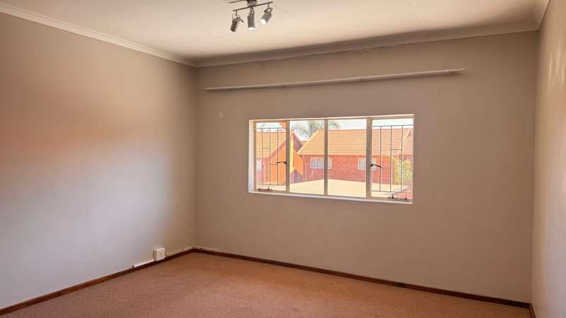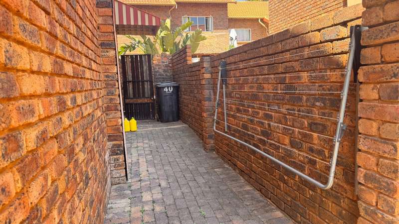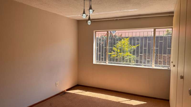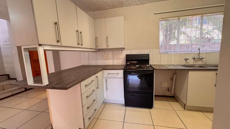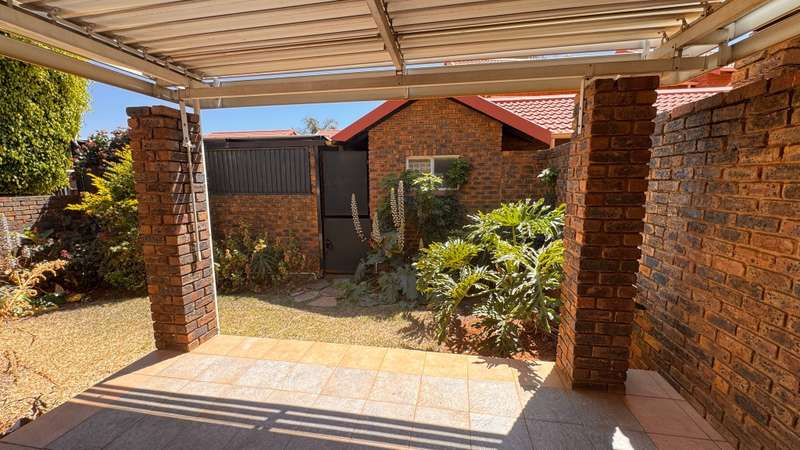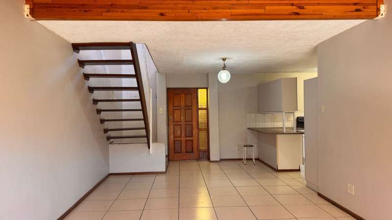 This well-sized 3-bedroom, 2-bathroom duplex is situated in the popular La Paradise complex in Garsfontein. The layout includes a large open-plan lounge and dining area with lofty ceilings, plus an upstairs living space ideal as a TV room or study. The main bedroom is located downstairs with an en-suite bathroom featuring a bath, basin, and toilet. Upstairs, two additional bedrooms share a second bathroom with a walk-in shower. All bedrooms have built-in cupboards. The functional kitchen is fitted with melamine cupboards, Formica countertops, an upright stove, and offers space for a double-door fridge and top loader washing machine. A breakfast nook and a storeroom add convenience. A covered patio with a louvered roof opens onto your own private, walled garden—ideal for outdoor relaxation. The unit also includes a double enclosed steel carport and features good security with electric fencing, and burglar bars Located near top schools such as Woodhill College and Hoërskool Garsfontein, and just minutes from shopping destinations including Boardwalk Lakeside, Dis-Chem Centre, and Atterbury Décor Centre.