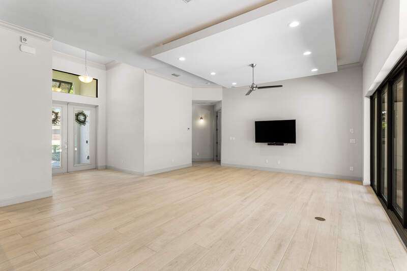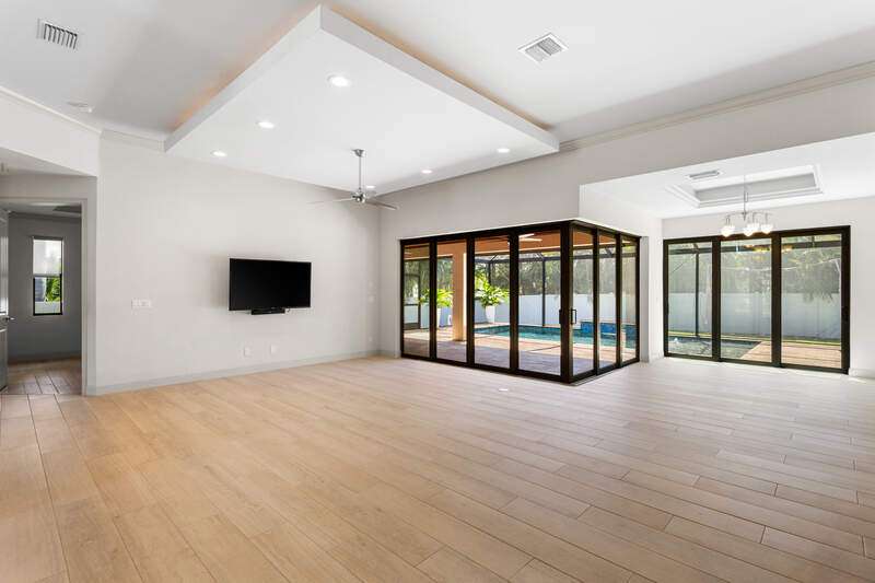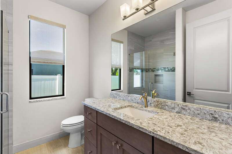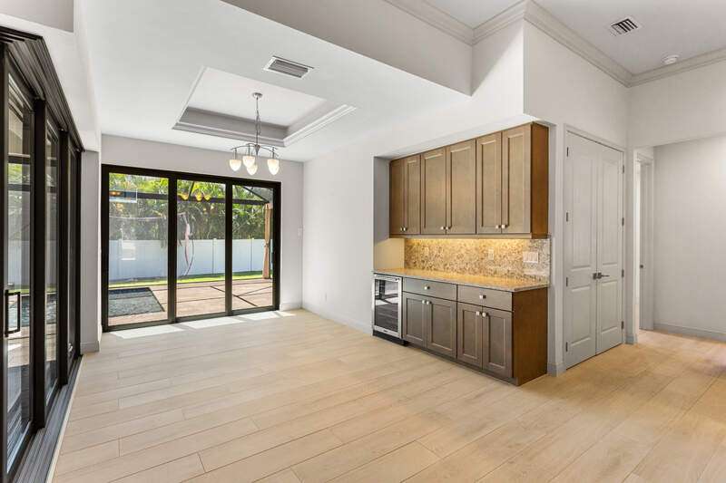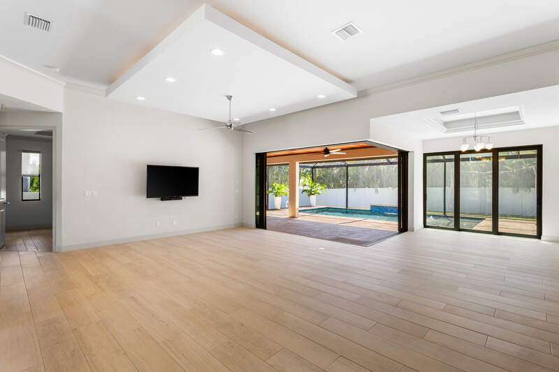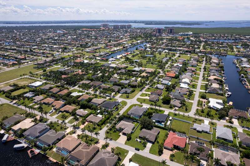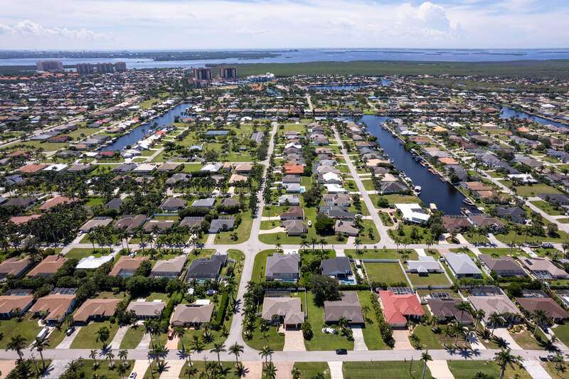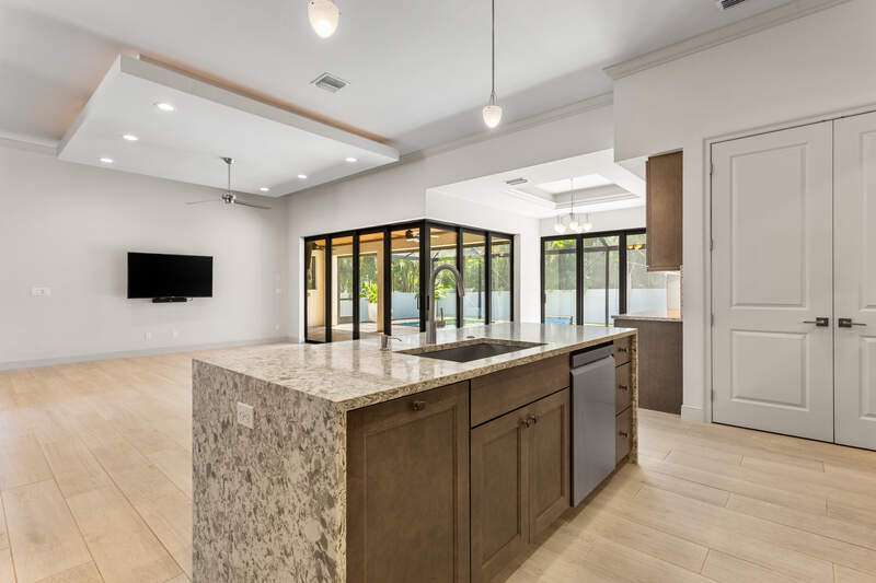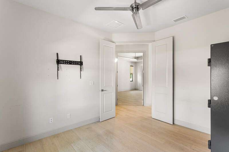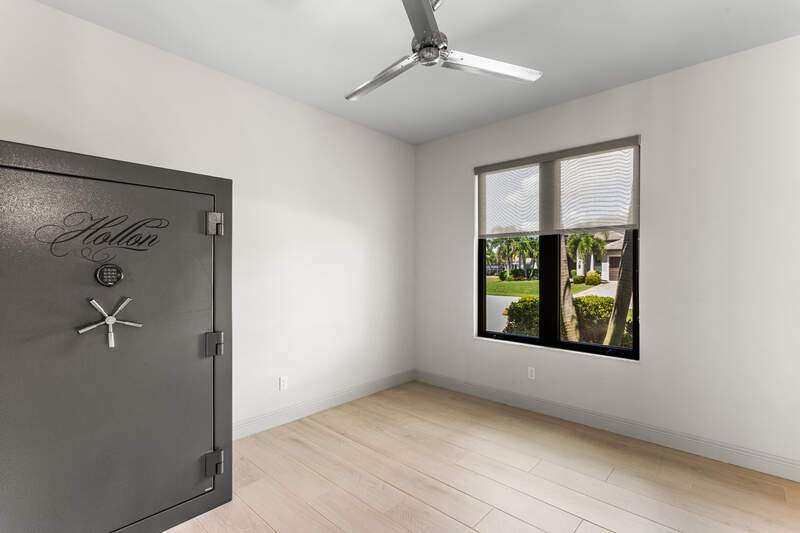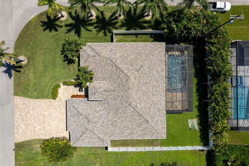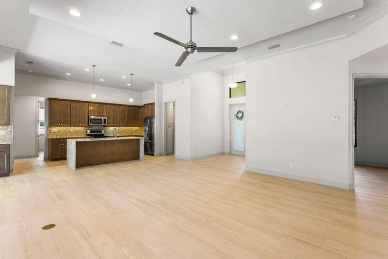 Located in the sought-after Southwest Cape Coral area, this stunning 3-bedroom + den, 3-bath home sits on an oversized corner lot with desirable Southern exposure. Designed for both comfort and style, this home features an open floor plan with soaring ceilings, elegant tray ceilings, and crown molding throughout-perfect for entertaining or relaxed living. Step outside to your private backyard oasis with a heated pool, sun shelf, tranquil water features, and a luxurious PebbleTec finish-ideal for enjoying Florida's year-round sunshine. The heart of the home is the chef-inspired kitchen, boasting quartz countertops, a large waterfall island, custom cabinetry, and premium stainless steel appliances. Impact windows and doors throughout and automatic hurricane shutters for the lania. Barkyard is partially turfed, perfect for outdoor activities. No expenses spared in this meticulous home. Conveniently located just minutes from Cape Harbour, top-rated restaurants, shopping, schools, and beautiful parks, this home offers the perfect blend of convenience and tranquility. Whether you're seeking a year-round residence or a luxurious winter retreat, this property is an exceptional opportunity in one of Cape Coral's most desirable neighborhoods.