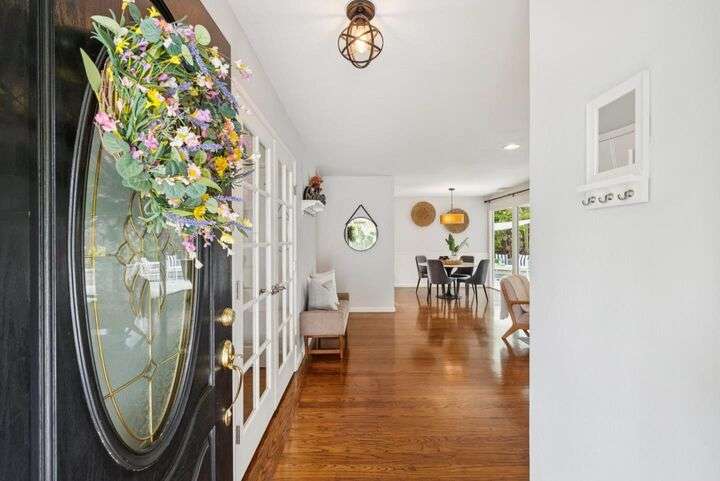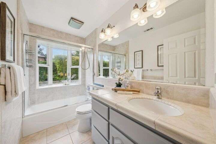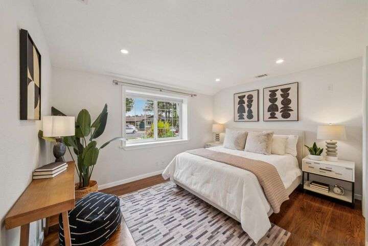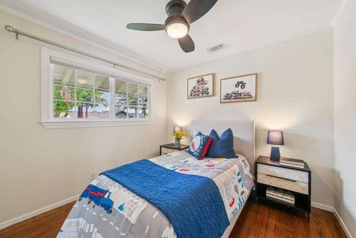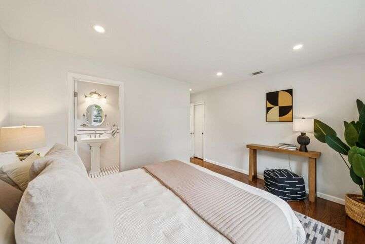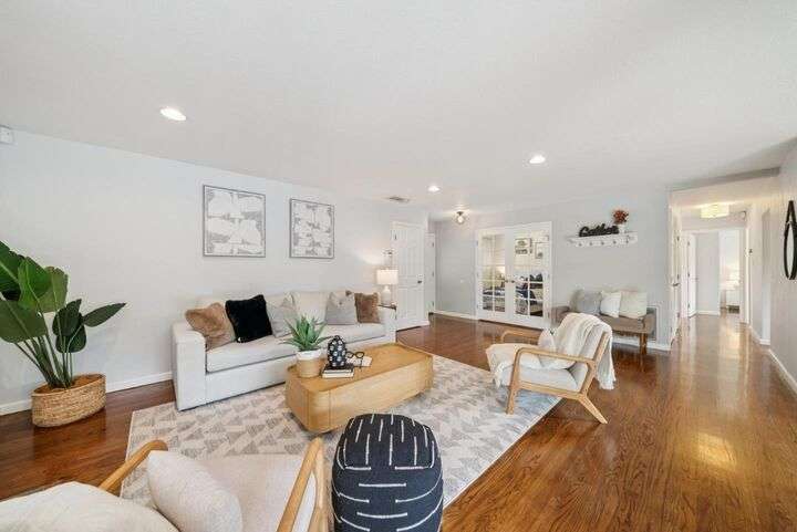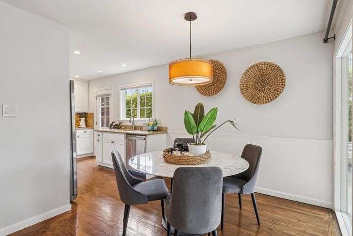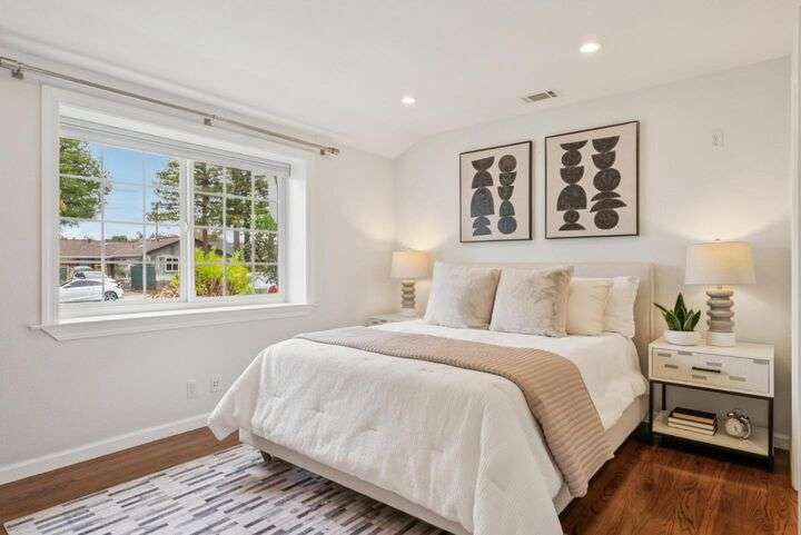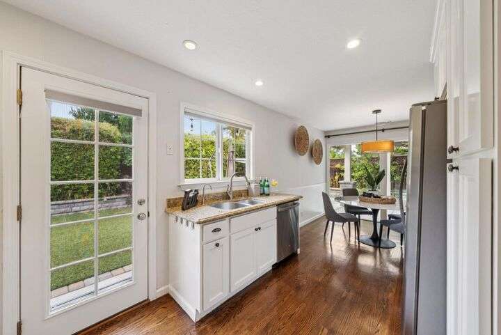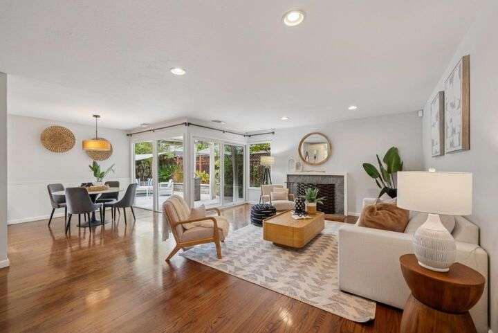 Welcome to 3335 Jennifer Way beautifully updated 3bed, 2bath home offering 1,206 sq. ft. of living space on a 6,075 sq. ft. lot located in desirable Cambrian neighborhood. Step inside to find gleaming hardwood floors, recessed lighting, and double-pane windows throughout. The inviting living and dining area features an elegant chandelier and a seamless flow into the remodeled kitchen. The kitchen showcases marble countertops with full backsplash, custom cabinetry, and stainless steel appliances perfect for both everyday meals and entertaining.The primary suite offers hardwood floors, recessed lighting, and a beautifully remodeled bathroom with tile floors and a shower over tub with a full tile surround. Two additional bedrooms feature hardwood floors, ceiling fans, and double-pane windows. The hall bathroom includes a custom vanity and tile finishes. Enjoy outdoor living with a manicured front yard, mature landscaping, and a covered patio ideal for relaxing or entertaining. Additional highlights include central air conditioning and a two-car garage. Conveniently located near Harker preschool campus. Quick access to highway 17 and 85 this home offers comfort, style, and an excellent location.