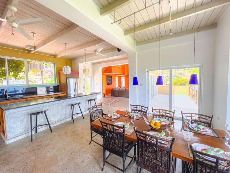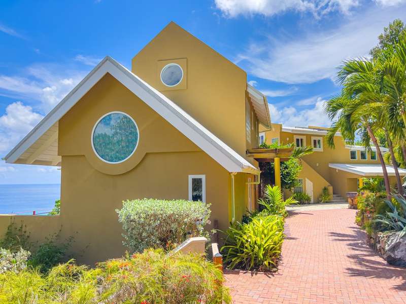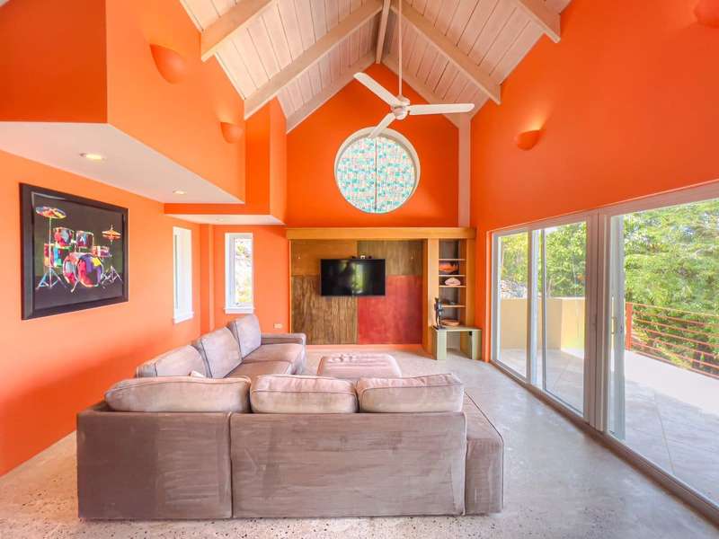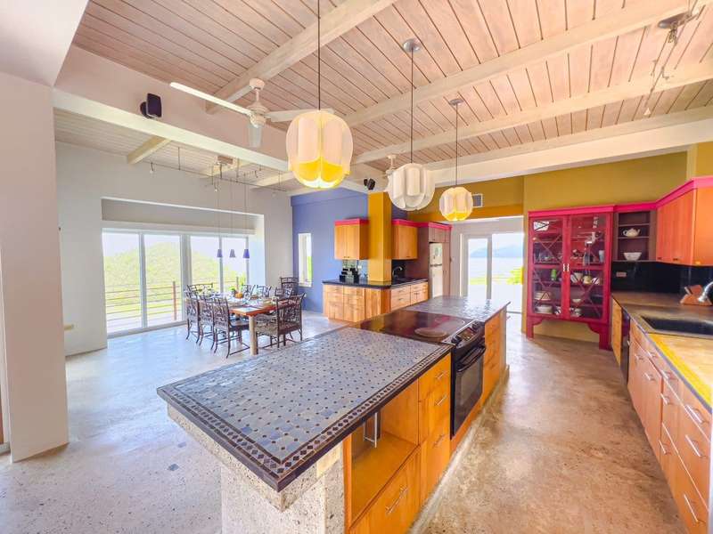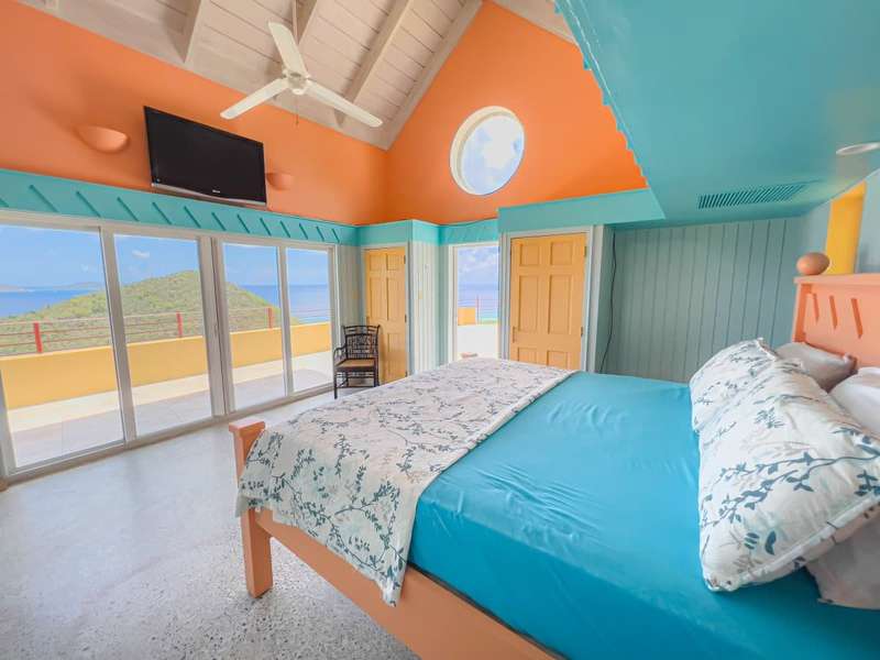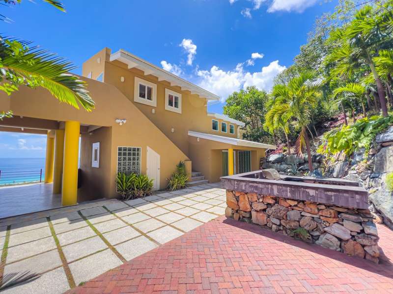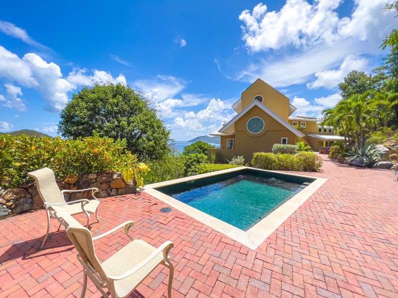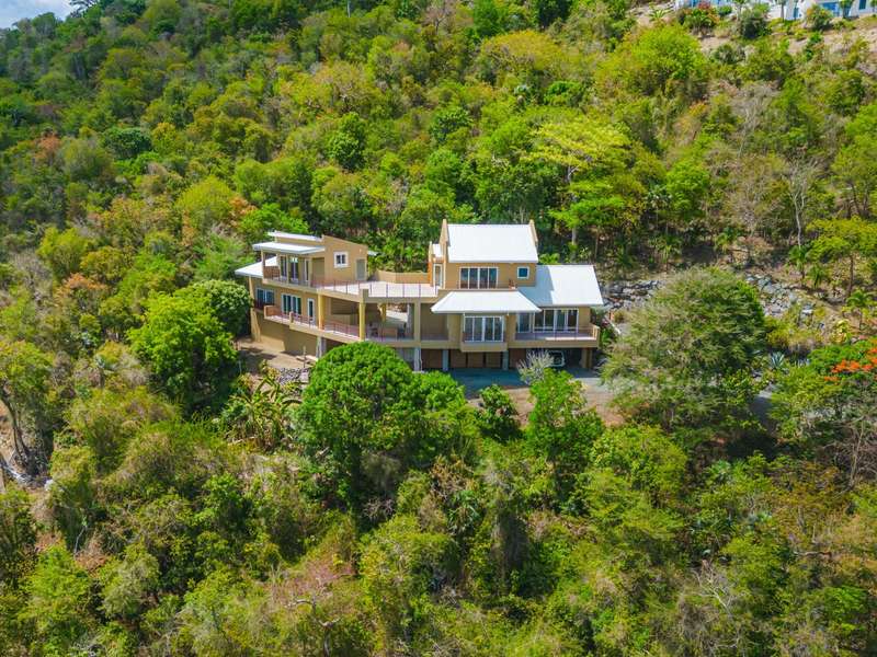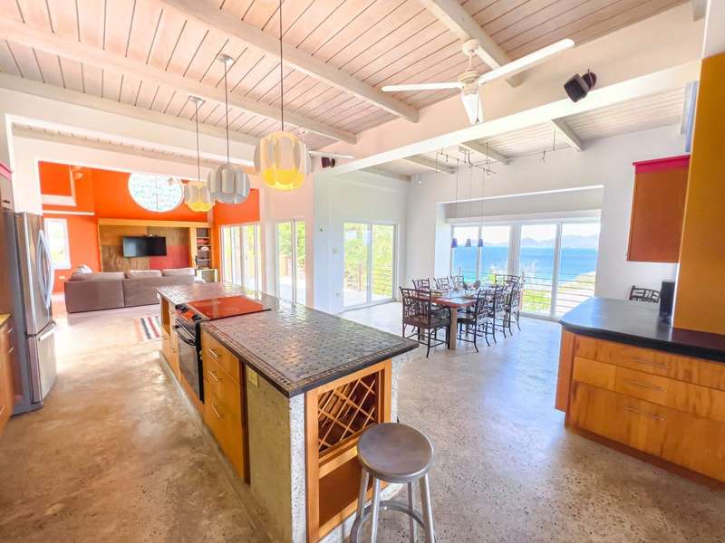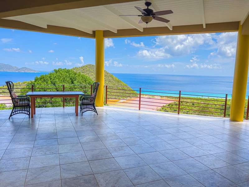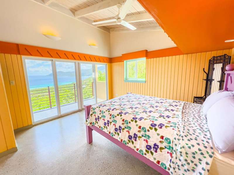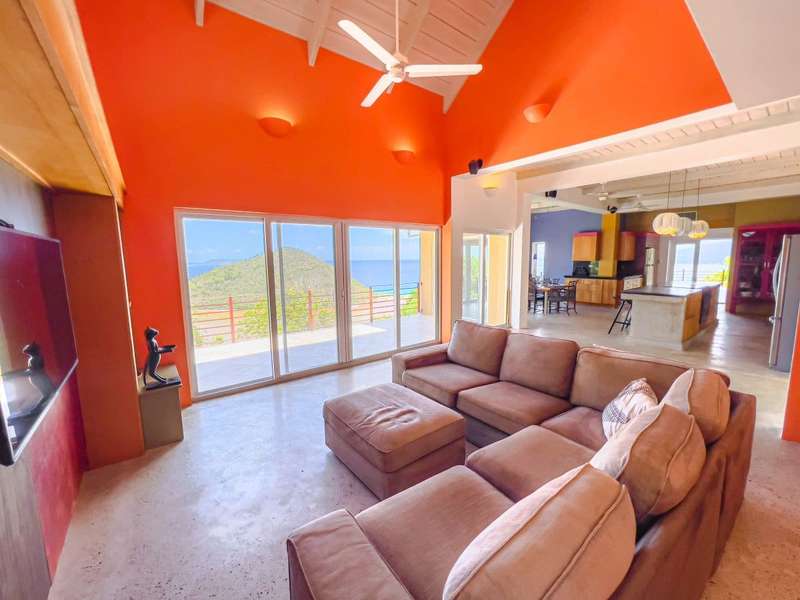 Ponda Vista is a beautiful villa built in 2008 and situated on a 1.103 acre plot in Belmont Estate. The twin terraces offer panoramic views to the outer islands of Little Tobago and Jost Van Dyke, and even as far as Tortola's Cane Garden Bay. The property is within walking distance of Smuggler's Cove and Long Bay Beach, making this a very desirable location. Property encompasses 5,165 sq ft, with four ensuite bedrooms, landscaped gardens and a pool. Extremely peaceful location to relax and recharge your batteries, but enough space to invite all your friends over for a celebration. The site has been thoughtfully developed, with a long flat driveway below the house with plenty of parking and turning space. In addition, at this level there is a car port, laundry room, as well as the pump and plant equipment which are discreetly hidden behind a wooden screen. Steps lead up to the vast rear patio and entrance to the main house. The patio area is enclosed by a beautiful stone retaining wall, above which is an array of Caribbean flora. A shimmering dark turquoise pool is located at the far end of the patio, with plenty of space to add sun loungers and sail awnings for shade. Just to the rear of the main house at the other end of the patio is a purpose built bar with integrated BBQ, just steps from the kitchen and the covered terrace. This property lends itself to entertaining, either on an intimate or large scale. The property is arranged over two storeys and divided by a terrace on both levels. The main house comprises open plan living room, kitchen, dining room and powder room. Full length windows bathe this space in light and the cathedral ceilings keep it cool. Sliding doors from both the dining room and living room open onto a deep balcony, a perfect spot to kick back with a sun downer. Kitchen has great working counter space and is fully equipped. Exit the kitchen and cross a large covered terrace to reach the primary bedroom suite. The primary bedroom suite has an ensuite king bedroom with doors which open into a 2nd ensuite bedroom with outside shower. This is perfect set up for young families, but alternatively one of the bedrooms could easily be converted to sitting room or office/gym space. Stairs lead up to the upper sun terrace with an ensuite king guest room to the left and an ensuite queen guest room to the right. With some thoughtful lighting and furnishing this current blank canvas could easily be transformed into an exotic roof terrace, reminiscent of Morocco with opulent cushions, banquettes and tiled tables, By day it would be a serene spot for sunrise yoga. This property has sensational views from every room and every angle. Light and spacious, with an array of outside spaces to enjoy the warm Caribbean climate. Suitable for any use - family home, vacation rental or long term rental are all viable options. Interior design is a blend of modern concrete floors offsetting bright acid colours. This property has a lot to offer. It will surprise you. Definitely worth viewing. ; ; ; ;