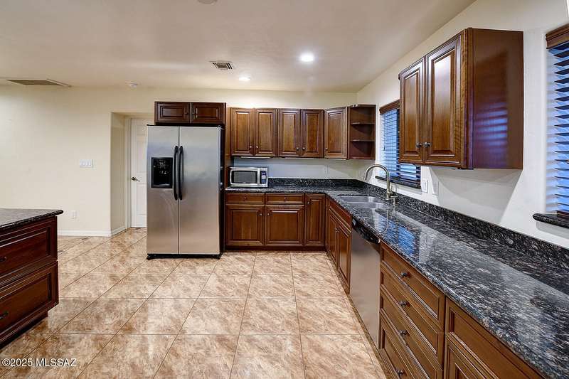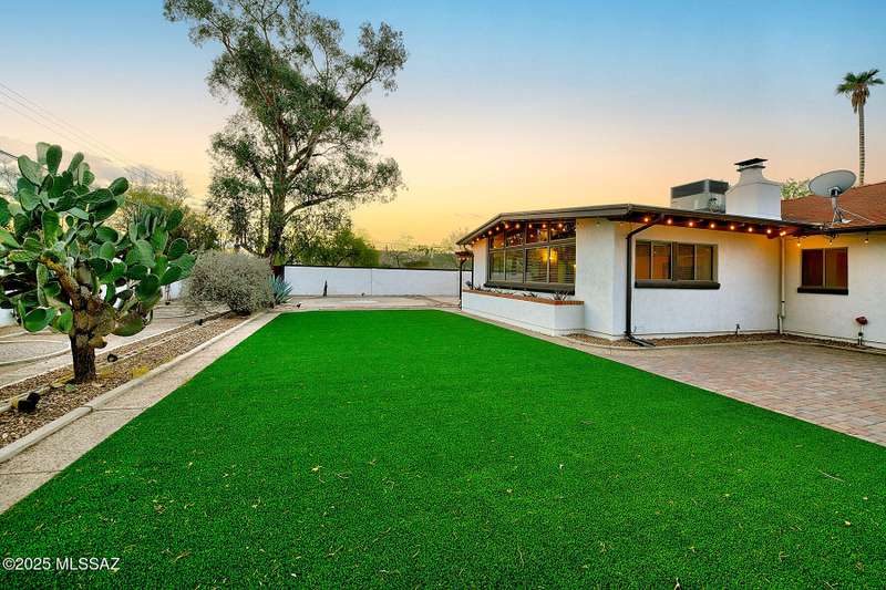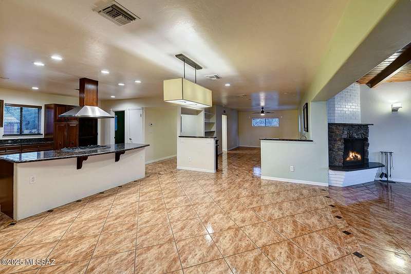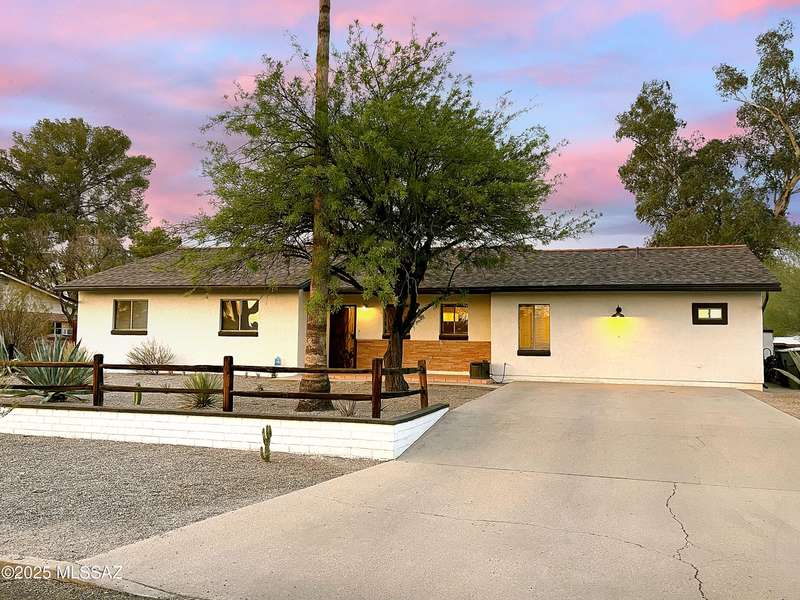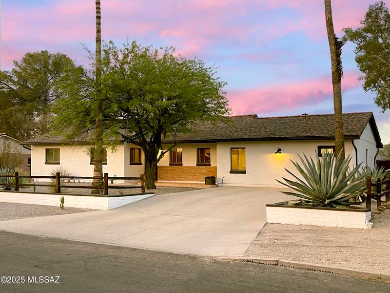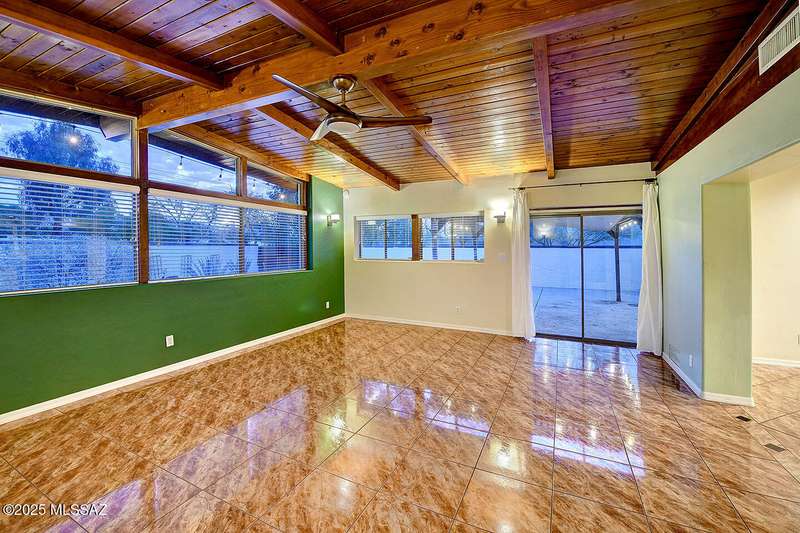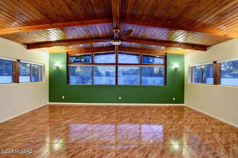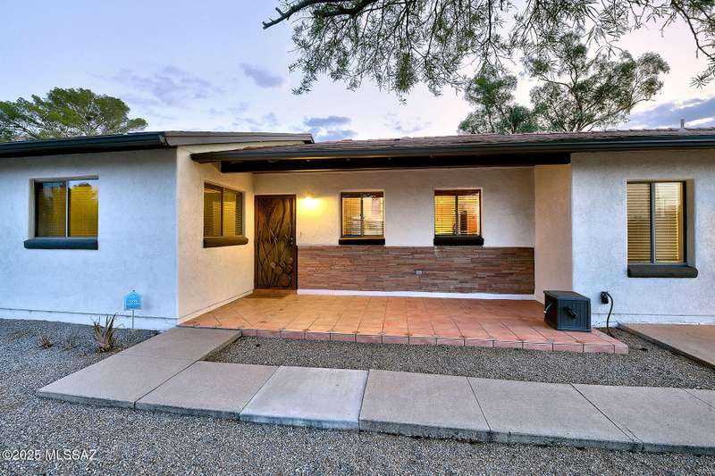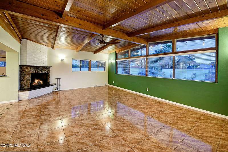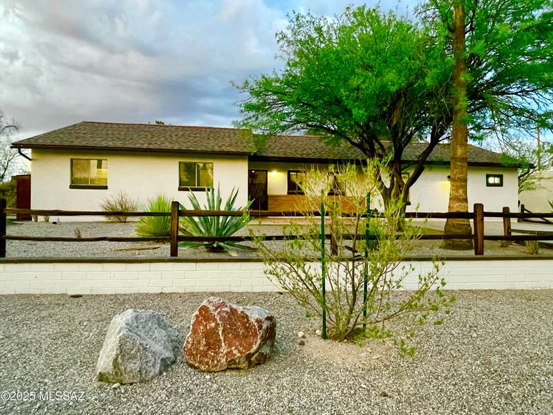 Welcome to Poet's Corner, where charm and comfort meet in this beautifully updated, sprawling Ranch-style home. With 2,570 square feet of thoughtfully designed living space, the split floor plan features a generously sized primary suite complete with a walk-in closet, ensuite bath, and a convenient private laundry room. Solid brick masonry construction with a brand new roof, HVAC/2023 and dual pane windows with abundant natural light create a warm and inviting atmosphere. The cook's kitchen is a true highlight featuring granite countertops, ample cabinetry, a breakfast bar, and a cozy eat-in area that opens to a spacious living room. A separate family room with vaulted wood plank ceilings and stunning views of the Santa Catalina Mountains adds to the home's distinctive