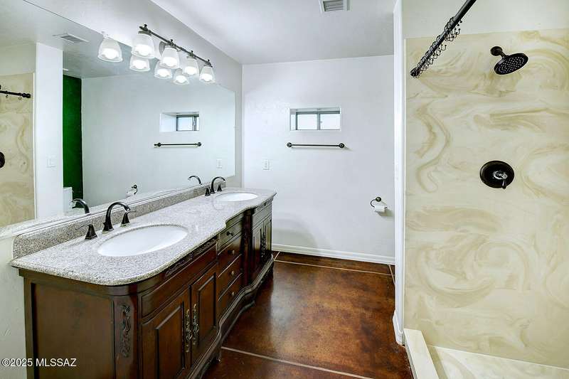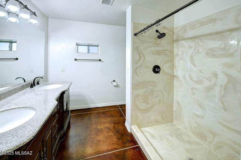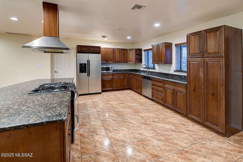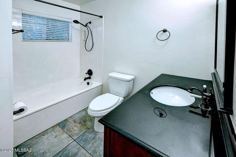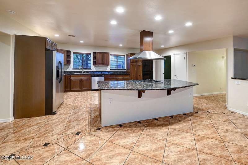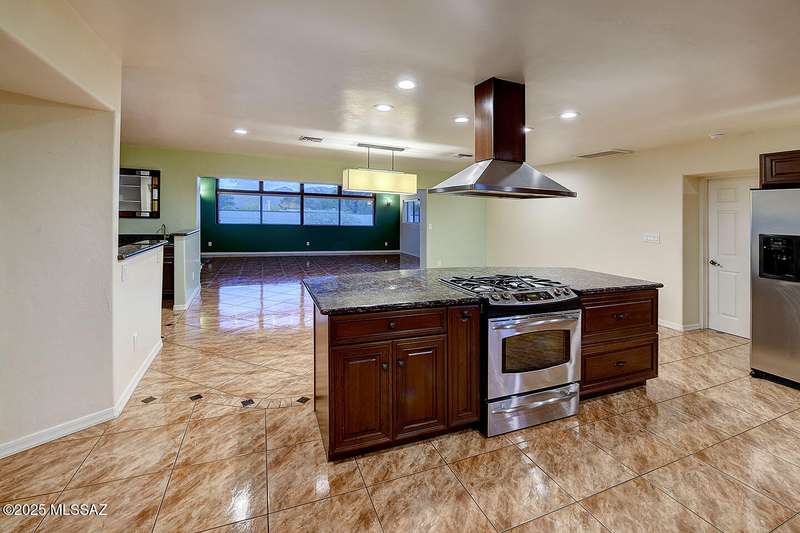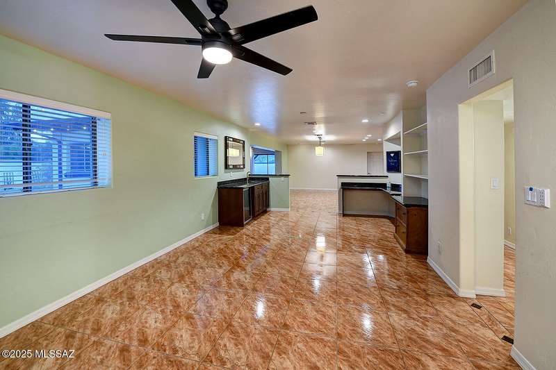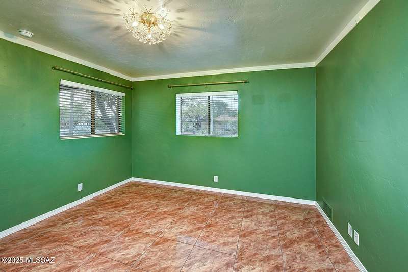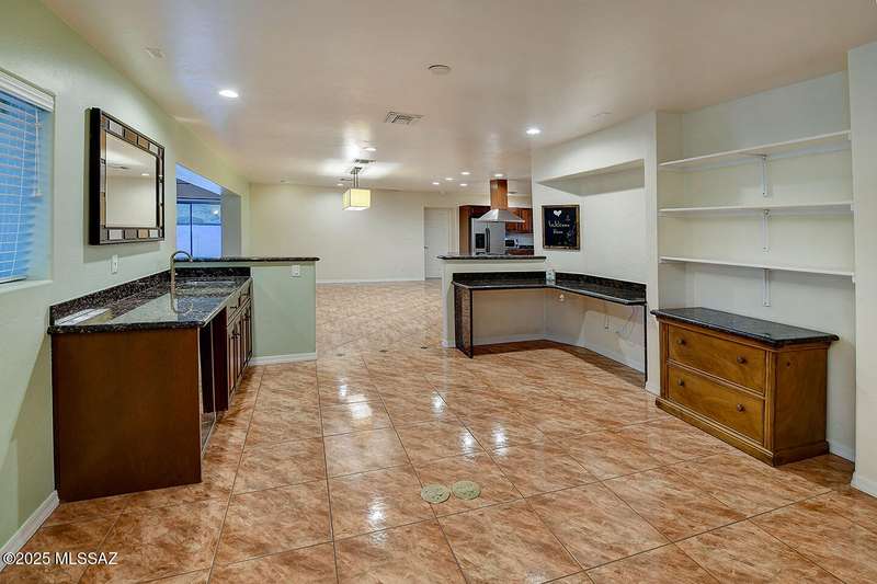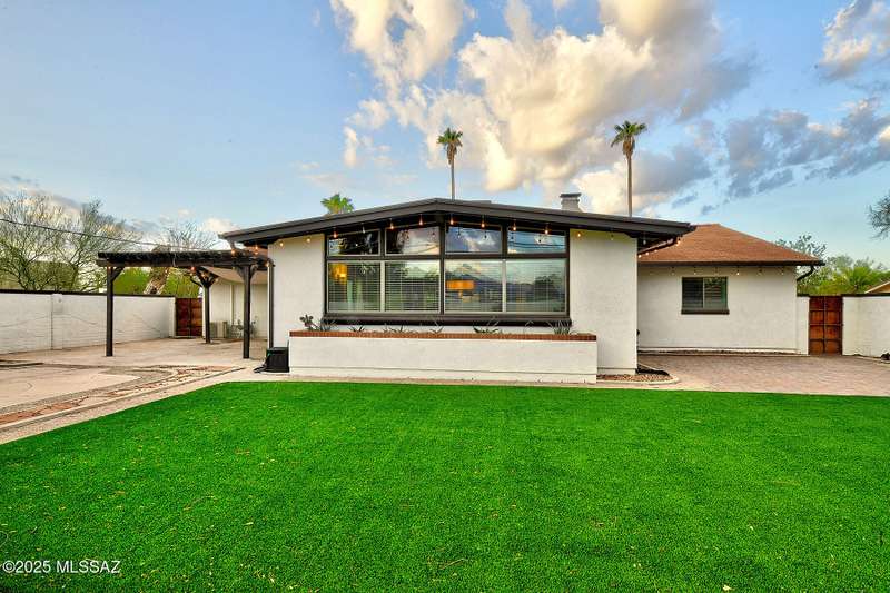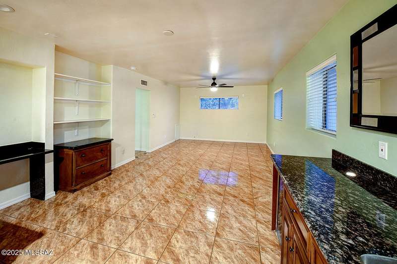 Welcome to Poet's Corner, where charm and comfort meet in this beautifully updated, sprawling Ranch-style home. With 2,570 square feet of thoughtfully designed living space, the split floor plan features a generously sized primary suite complete with a walk-in closet, ensuite bath, and a convenient private laundry room. Solid brick masonry construction with a brand new roof, HVAC/2023 and dual pane windows with abundant natural light create a warm and inviting atmosphere. The cook's kitchen is a true highlight featuring granite countertops, ample cabinetry, a breakfast bar, and a cozy eat-in area that opens to a spacious living room. A separate family room with vaulted wood plank ceilings and stunning views of the Santa Catalina Mountains adds to the home's distinctive