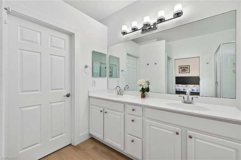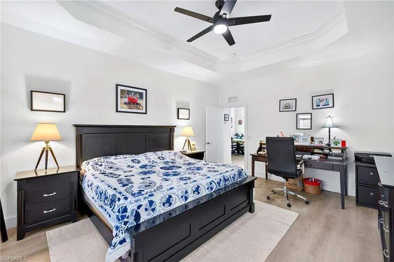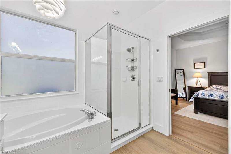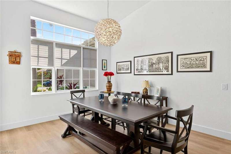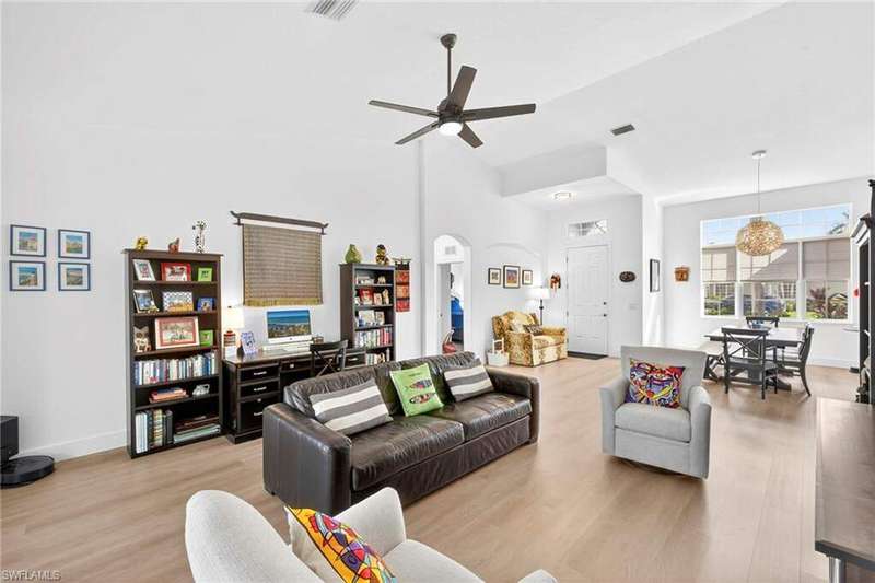 Priced to sell! This beautifully maintained home welcomes you with an open great room and a formal dining area filled with natural light. The kitchen and breakfast nook features wood cabinetry, Corian countertops, a spacious bar, and elegant finishes. Freshly painted with new flooring throughout! All windows and the sliding door have been replaced with impact-rated upgrades for added safety and efficiency. A whole-home water filtration system provides clean, great-tasting water throughout the house-an exceptional comfort and health feature. The luxurious owner's suite includes a garden tub, dual vanities, and an oversized walk-in closet. Two guest bedrooms are privately located on the opposite side of the home for added comfort. Enjoy an extended covered lanai perfect for entertaining and a private backyard with space for a custom pool. Nestled in Chadwyck Square, a gated enclave of 55 homes offering an intimate and friendly neighborhood with low HOA fees and fantastic amenities. Enjoy the clubhouse, fitness center, sparkling community pool, play area, and pickleball courts. This home offers an ideal location about 5 miles from the beach and sits safely in a X flood zone. Schedule your private showing today and discover the serene charm of Southwest Florida living.