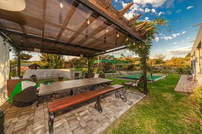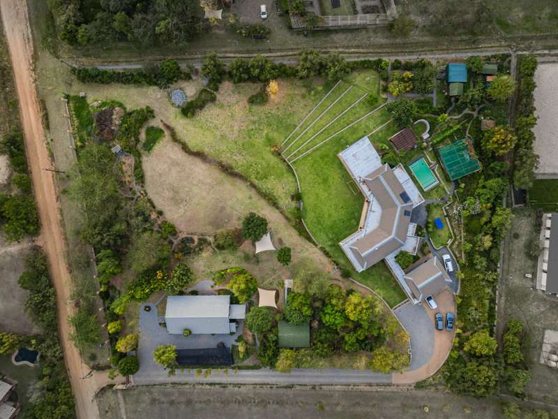 The outdoor area is a landscaped masterpiece, featuring a harmonious setting of mature trees and diverse plantings that create a tranquil garden sanctuary. For the active family, the estate is equipped with a jungle gym, trampoline, and cricket nets. The well-maintained vegetable garden and a sparkling swimming pool invite you to live a healthy, active lifestyle while enjoying the great outdoors.