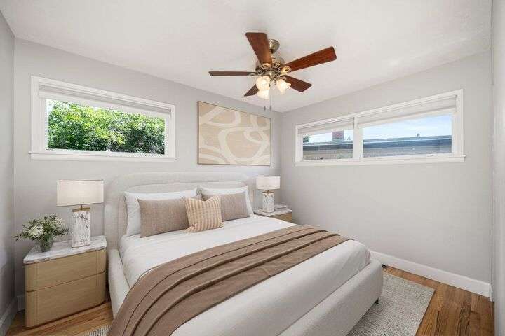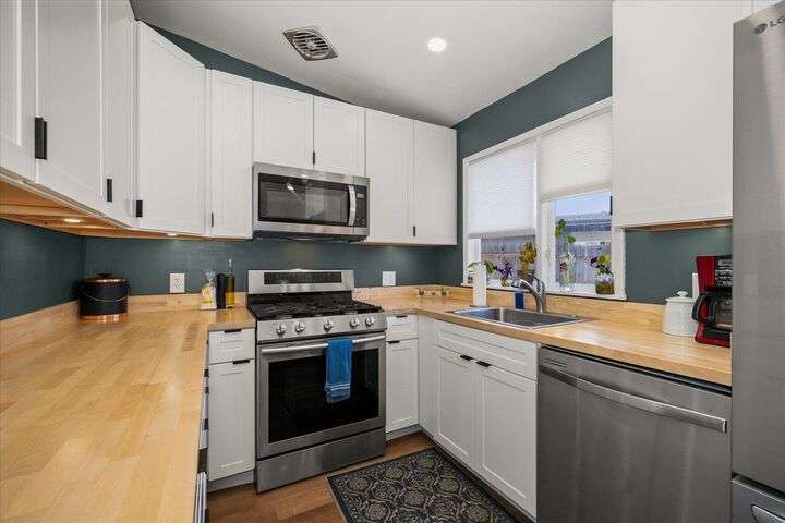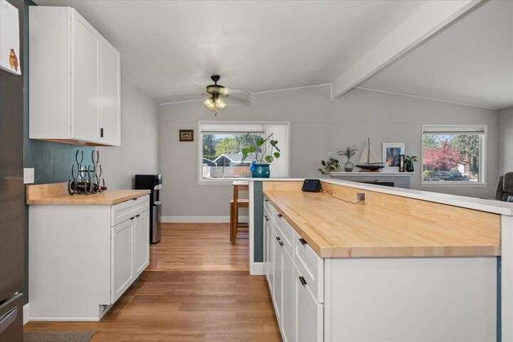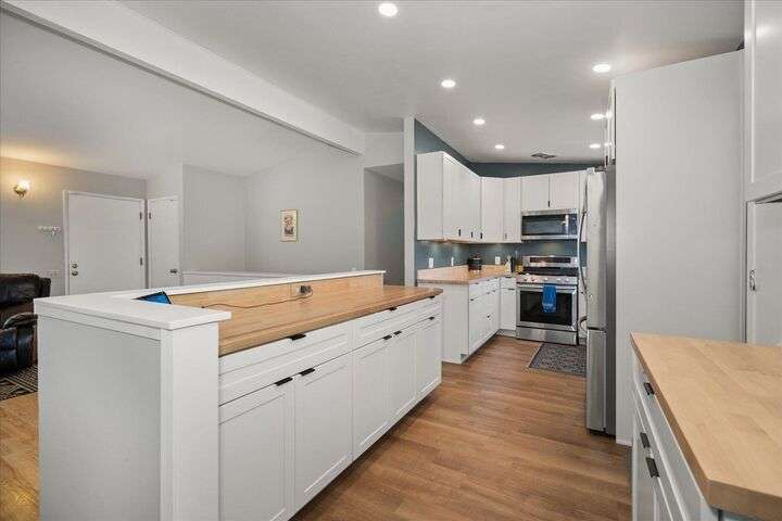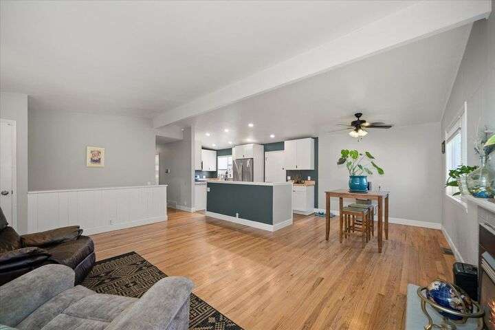 This beautifully updated 4 bed, 1.5 bath Mid-Century Modern Rancher offers effortless style and comfort, ready for you to move right in. Fresh interior paint and updated interior doors enhance the timeless charm, hardwood floors flow throughout the spacious main level. Enjoy an open-concept layout with soaring cathedral ceilings that create a bright, airy atmosphere. The kitchen has been tastefully updated with butcher block countertops, New Stainless steel appliances, and modern finishes—perfect for cooking and entertaining. The main floor bath has also been updated for a fresh, contemporary feel. “Enjoy the spacious family room (with fireplace in the finished basement) and plenty of storage.“ New Furnace, AC, and Hot water tank, all systems have been taken care of. Step outside to a fully fenced backyard that offers privacy and peace of mind, ideal for relaxing or hosting gatherings. Conveniently located, you're close to shopping, restaurants, and schools!