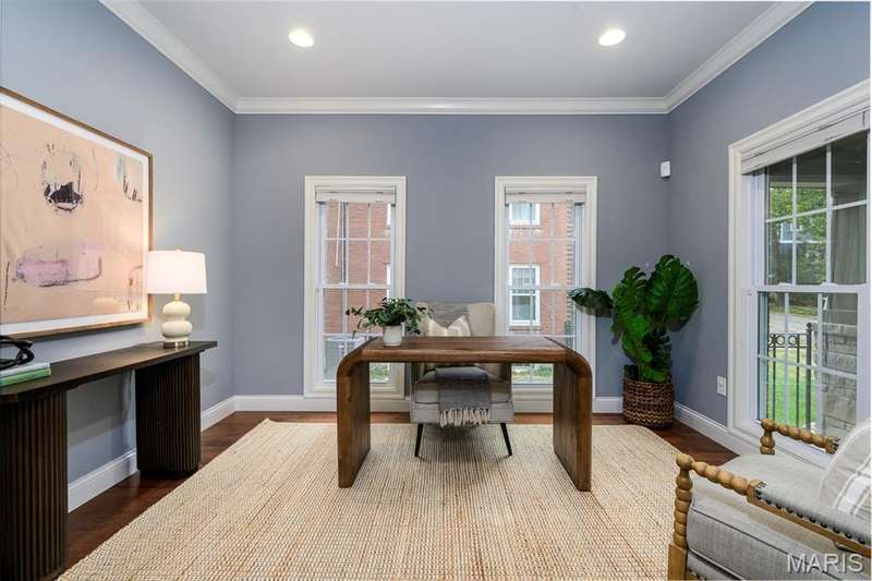 Beautifully crafted by Mark S. Mehlman, this home sits just steps from the heart of Clayton. With 4 bedrooms, 4.5 baths, and roughly 4,050 sq. ft. of living space, enjoy everyday practicality on a deep, level lot. The main floor is built for entertaining: 9 ceilings, hardwoods, clean lines, and a vibe that says modern but not sterile. A foyer opens to dining and office/living spaces, while the kitchen and great room are where life actually happens. Gather around the giant island in the chef's kitchen and pretend to listen as you gaze at your granite counters, double oven, 6-burner cooktop, and a butlers pantry. The great room, anchored by a fireplace and custom shelves, flows to a patio and landscaped yardperfect for BBQs, chaotic playdates, or that glass of wine that mama needs. Bonus: laundry/mudroom with custom cabinetry and a legit dog shower, because who likes dirty paws? Upstairs, the primary suite is the retreat youll actually use: spa bath with heated floor, soaking tub, shower, dbl vanity, and a closet that can handle your shopping habit. Three more large bedrooms and two full baths keep everyone else happy. LL features 9 ceilings, full bath, gym/office, and a rec room begging for a golf simulator (instant new friends). Add in all the tech, two-car attached garage, Hardie siding, irrigation, and a dog fence, and youve got style, smarts, and convenienceall within walking distance of Claytons dining, shopping, and easy access to major highways and the airport.