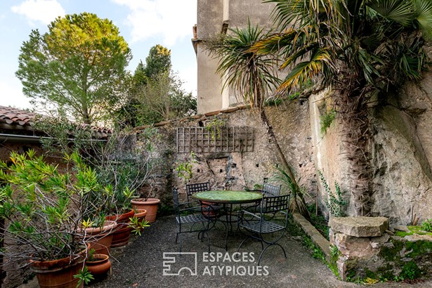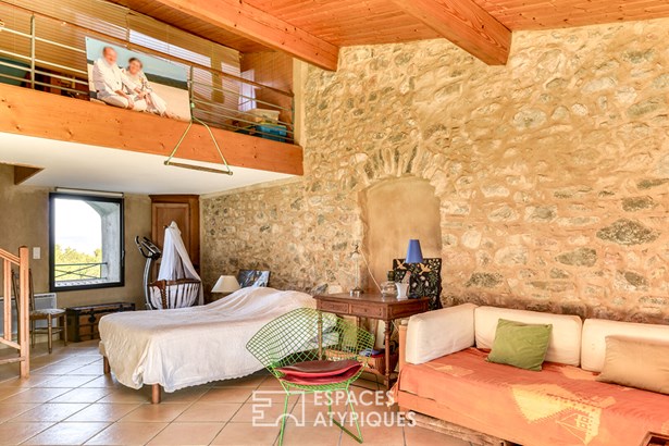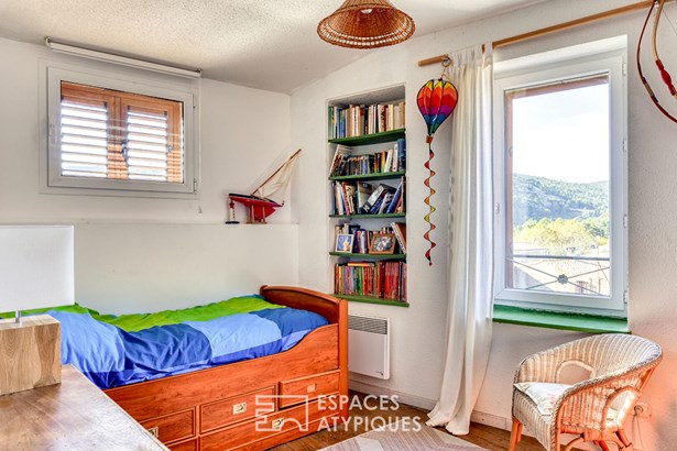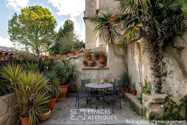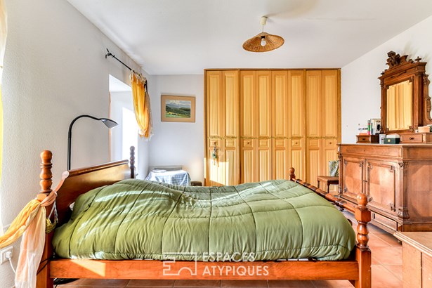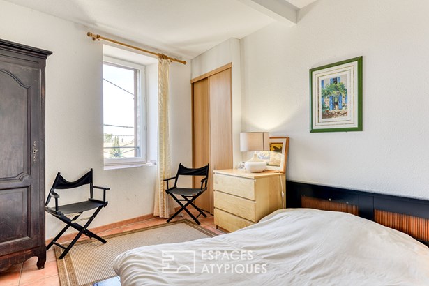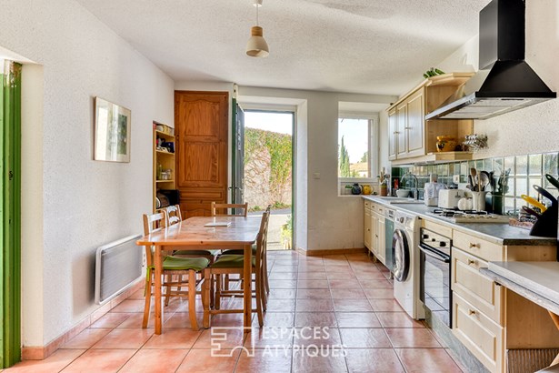 At the top, two attic bedrooms reveal themselves, offering not only a unique charm but also a panoramic view of the surrounding landscapes, where the peaks of the Montagne Noire and Mont Alaric grace the horizon, inviting you to escape with every sunrise.