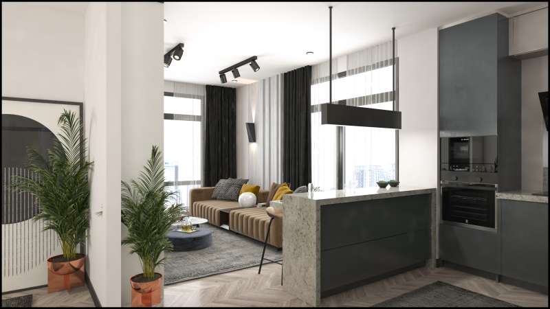 The apartments are offered for sale in different types and there may be differences in en-suite bathrooms and balconies. As standard in all apartments; suspended ceiling, kitchen cabinets, cloakroom, open-plan kitchen, PVC thermal glass systems, laminate flooring and wet floor ceramics, shower cabin, and video intercom systems are available.