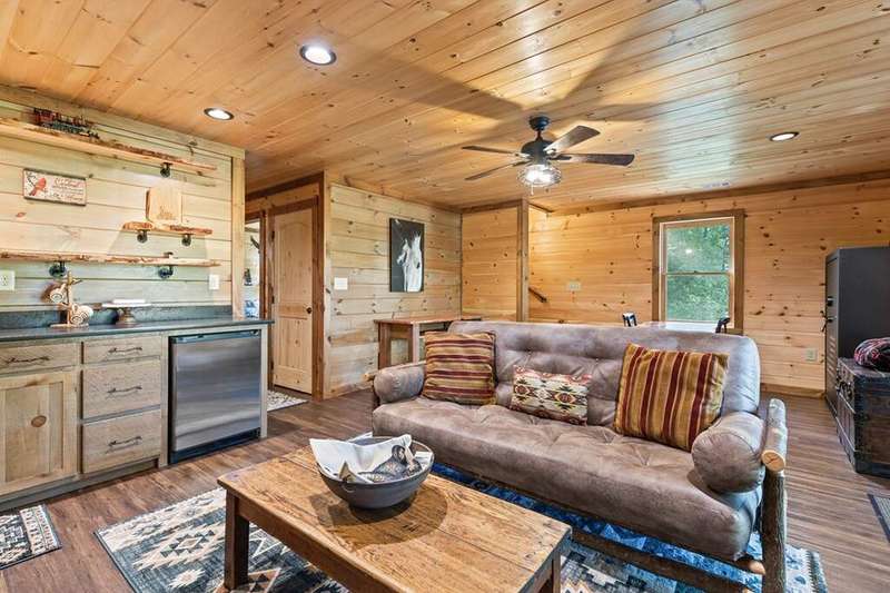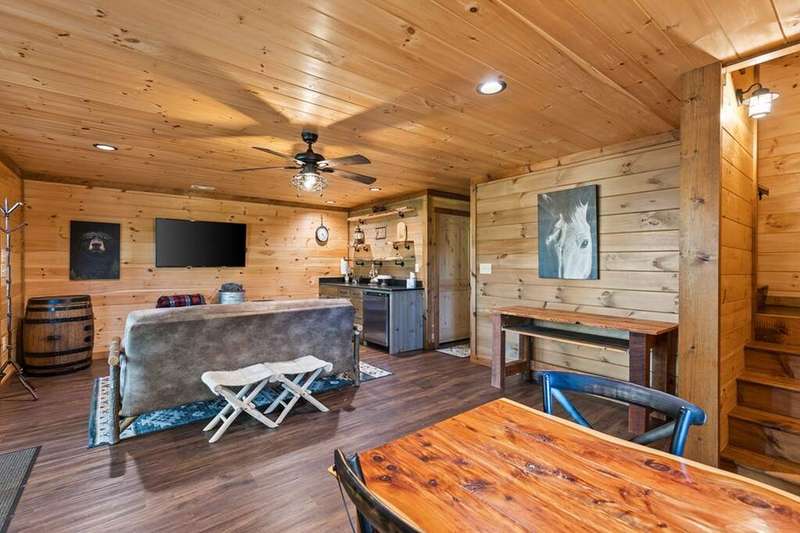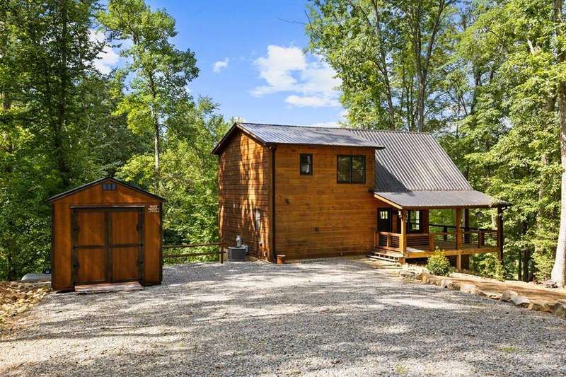 Welcome to "Cardinal Country" Cabin, a charming 3bedroom/three bath mountain retreat that comfortably sleeps seven. Nestled on 1 acre with an additional lot for a total of 1.95 acres, this property offers privacy, space and serene views overlooking a tranquil pond. Step inside to a bright, open kitchen featuring stainless steel appliances, granite countertops, and custom cabinetry. The inviting family room is anchored by a beautiful stacked stone fireplace-perfect for cozy evenings. A bedroom is conveniently located on each floor, offering privacy and flexibility, while the loft provides extra living space. Laundry is located on main level for ease and convenience. Being sold turnkey, this cabin is ready for you to enjoy from day one. Outdoors, you will find a hot tub, additional storage for your gear, county maintained roads for year round access and close proximity to both downtown Blue Ridge and Blairsville for shopping and dining. Whether seeking a full time spot, a weekend getaway, or investment opportunity this property is a definite "go see and fall in love".