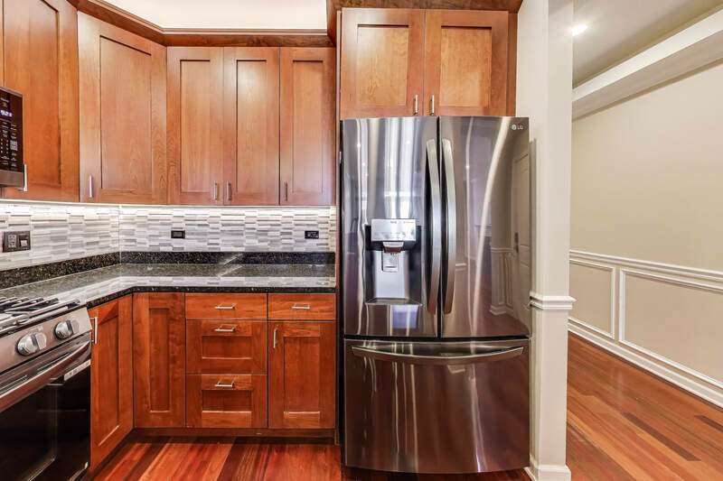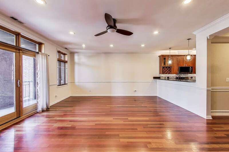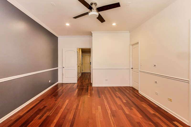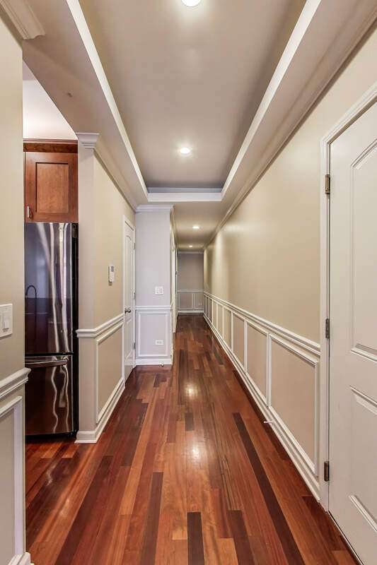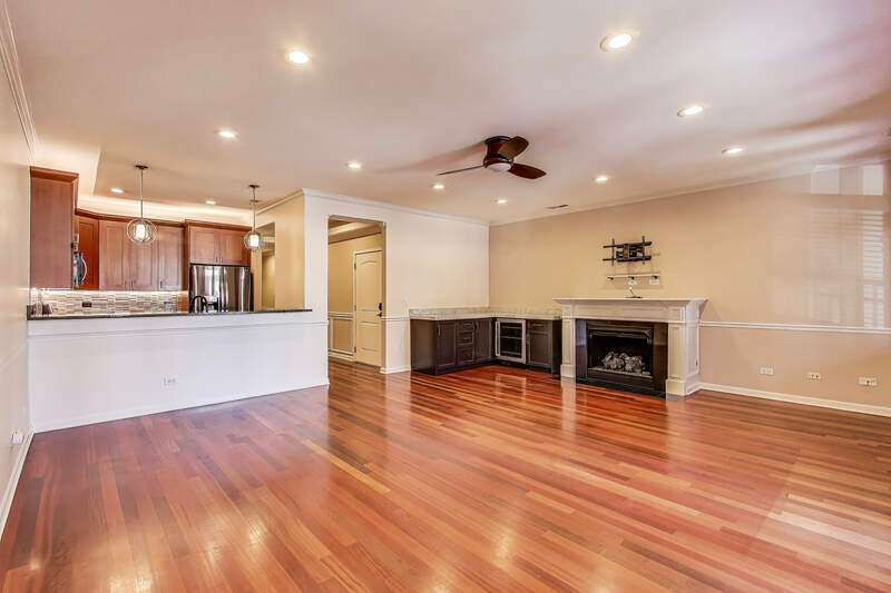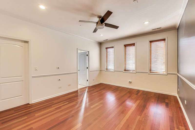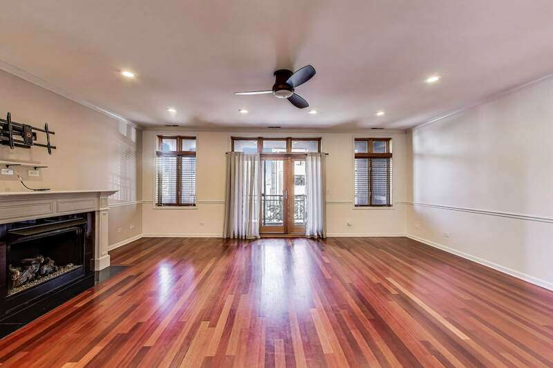 This extra-wide, sun-drenched condo-quality unit features 3 bedrooms, 2 bathrooms, and ample living space. It boasts beautiful cherry hardwood floors, crown molding, and chair rail accents, designed for both comfort and style. The open-concept living and dining area, complete with a wet bar and gas fireplace, extends to a large 24' x 7' front balcony, ideal for entertaining or relaxing outdoors. The kitchen is equipped with brand-new LG black stainless-steel appliances, granite countertops, and stylish pendant lighting. The primary suite includes a custom walk-in closet system and a spa-like bathroom featuring a steam shower and body sprays. Two additional bedrooms and a second full bath offer excellent flexibility for guests, roommates, or a home office. Additional highlights include in-unit laundry, central heating and air conditioning, and an oversized 10' x 20' parking space available for $150 per month, which can accommodate two large vehicles or provide convenient guest parking. Designated storage is also included. Perfectly located in vibrant Noble Square, this home is just steps away from the restaurants, shops, and Eckhart Park along Chicago Avenue, with quick access to the Blue Line and I-90/94. Available now.