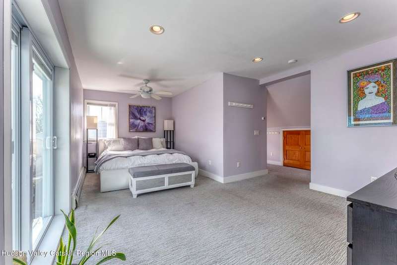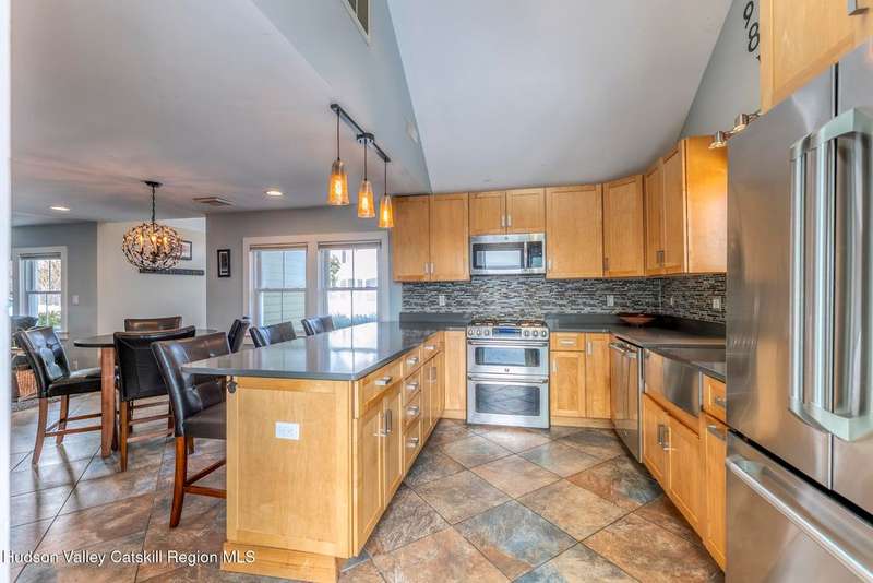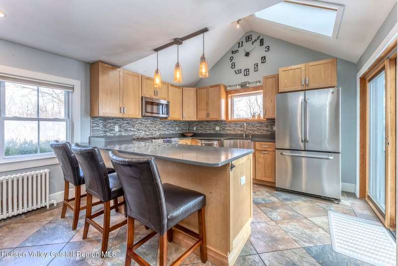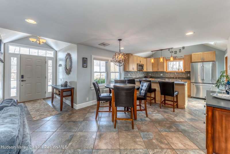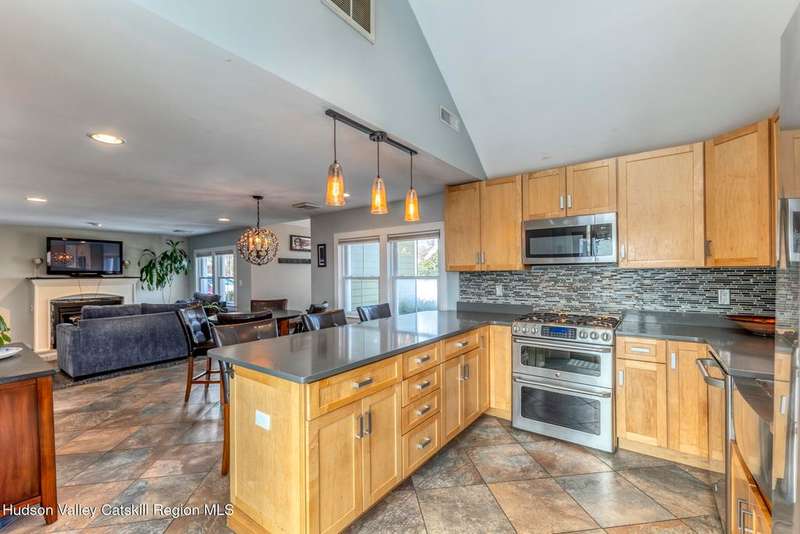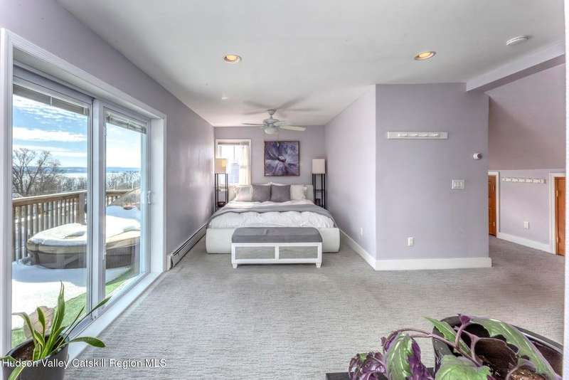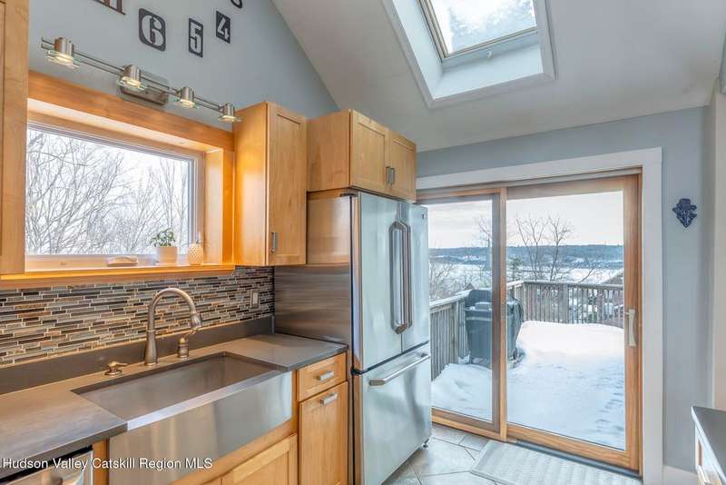 Breathtaking sunrises and sunsets on the Hudson River viewed from every level of this beautifully updated three-story hilltop gem! This flexible 2-3 bedroom home offers a thoughtfully designed layout perfect for full-time living or a peaceful weekend retreat.The gourmet kitchen?complete with premium finishes?flows seamlessly into the open-concept dining and living areas, where a cozy gas fireplace invites year-round comfort. Step outside onto one of the 3 spacious decks on each level to enjoy panoramic vistas and the ever-changing beauty of the River.The entire top floor is dedicated to the serene primary suite, featuring a spa-like bathroom, walk-in closet, and a romantic Juliet balcony. The walk-out lower level offers a versatile family room, secondary suite or home office, a full bath, utility room, and a cedar closet for ample storage.Additional highlights include: Municipal water & sewer, Natural gas service, Backup generator and One-car attached garage.Located within a short walk to 2 local parks and Historic Kingston Waterfront with all its activities and delicious restaurants!Enjoy easy access to Kingston, New Paltz, Rhinebeck, as well as 20 minute drive to Rhinecliff and Poughkeepsie train stations?making this an ideal location for both commuters and weekenders alike.This unique river-view retreat offers the perfect blend of tranquility, style, and convenience. It's a must see so schedule your showing today!