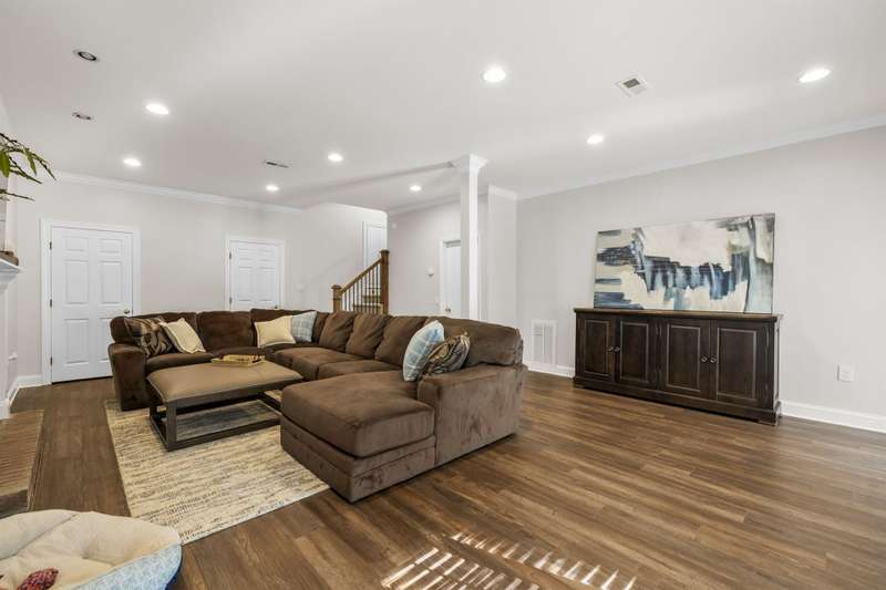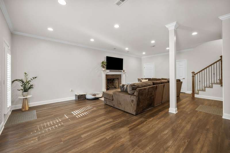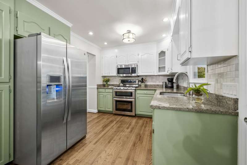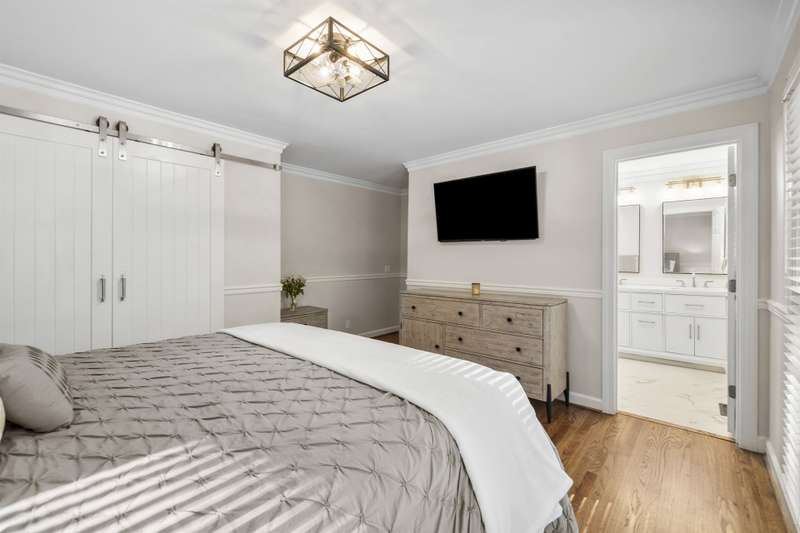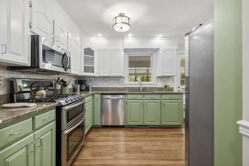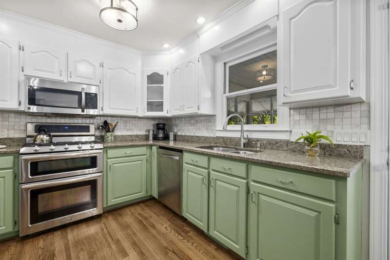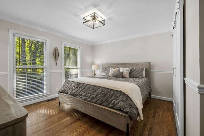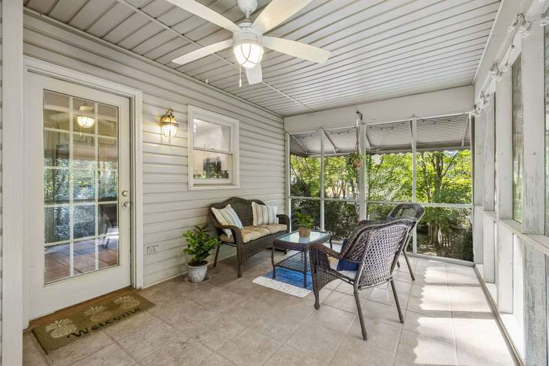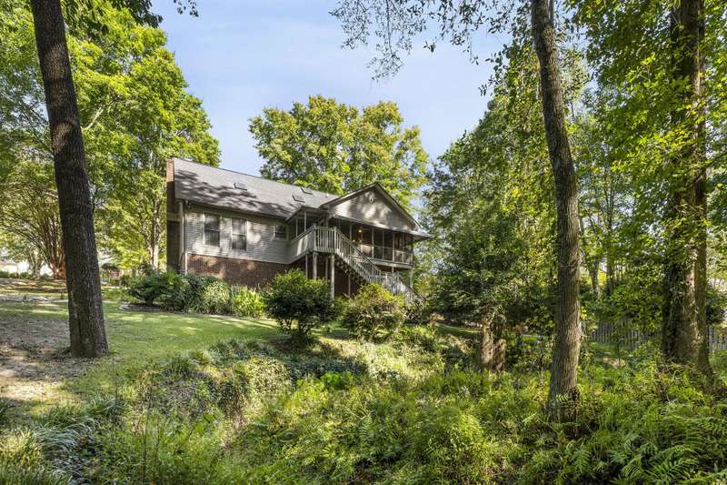 This beautifully remodeled Cape Cod is tucked away on a private wooded lot with a backyard retreat you'll love year-round! The home features smooth ceilings, refinished hardwood floors, fully updated bathrooms, new carpet and luxury vinyl, and fresh interior paint. A welcoming rocking chair front porch leads into a two-story foyer flanked by a formal dining room and a cozy living room with a gas fireplace and custom built-ins. The updated kitchen boasts stainless steel appliances with gas cooktop, granite countertops, tile backsplash, a large pantry, and an oversized picture window framing the serene backyard view. Adjacent are the walk-in laundry room and access to the screened porch. The main-level primary suite includes a luxuriously remodeled bathroom featuring a spacious custom layout with a double-sink vanity, stylish new light fixtures, and a beautifully designed tile shower. Upstairs offers a loft with skylight?perfect for an office or reading nook plus two large bedrooms and a full hall bath that has been custom-designed and fully remodeled, featuring a skylight, marble-top vanity, standalone soaking tub, and a beautifully tiled shower wall. The walkout basement adds a spacious bonus room with gas fireplace and abundant storage. Outdoor living shines with a screened porch, grilling deck, covered patio, and a tranquil setting with creek, waterfall, and pond. The oversized garage accommodates large vehicles, with extra parking available. Conveniently located near Woodruff Road shopping and dining, this home combines a flexible floor plan, quality updates, and peaceful surroundings a true Greenville gem!