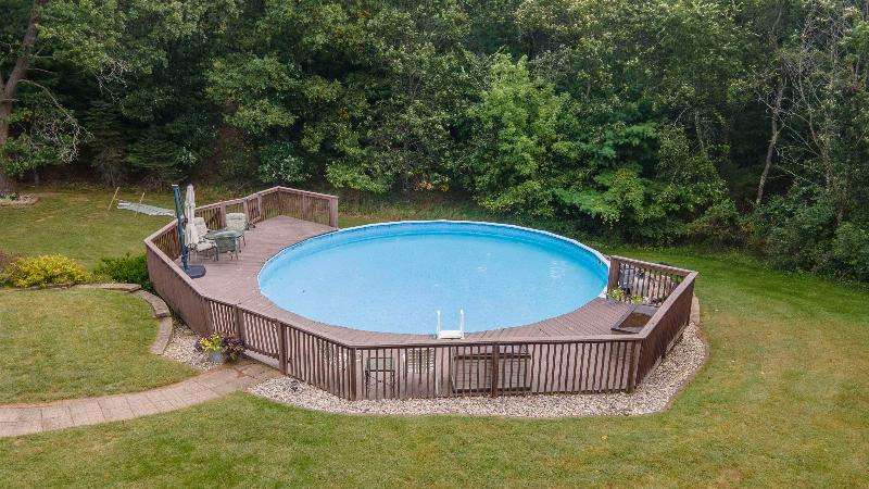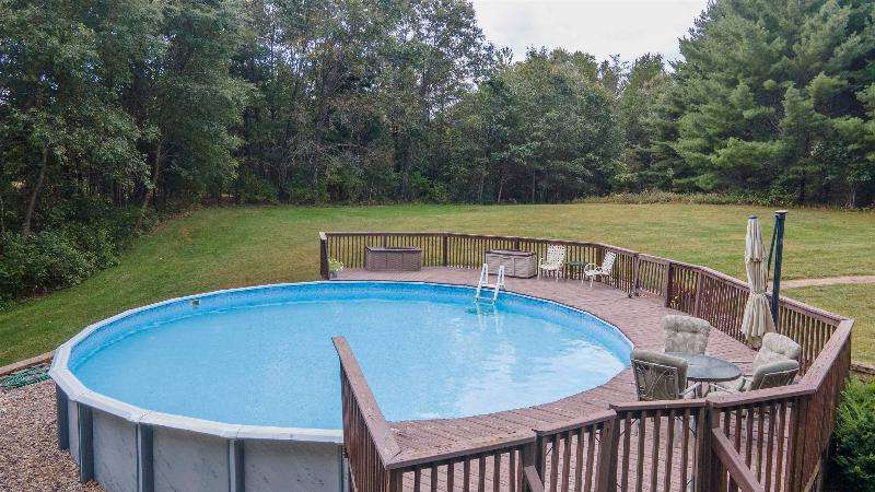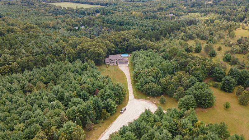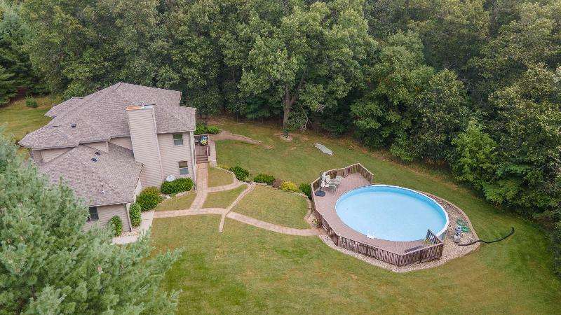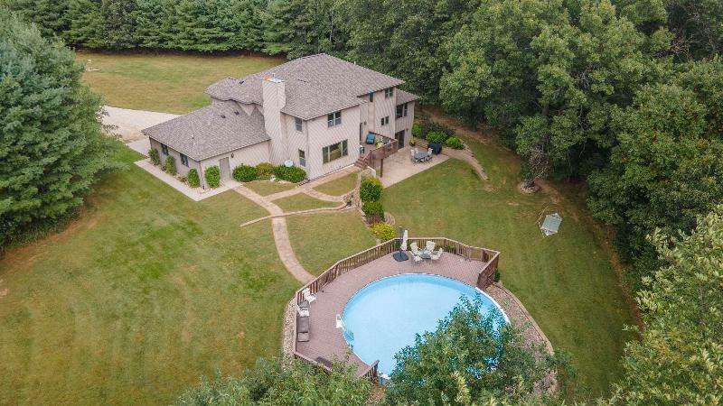 At the end of a quiet cul du sac you will find this beautiful custom built home. The home offers space and comfort w/ its spacious floor plan and attention to detail around every corner. Large eat-in kitchen w/ plenty of cabinet space. Formal dining room off of the kitchen makes for a wonderful entertaining space. 2 separate family rooms on the main floor, a den/office and main floor laundry. Upper level has 4 bedrooms and 2 full baths. Central vacuum in home. Lower level has additional large family room, in floor heat, wrap around bar, full bath and a walk out entrance and garage access. Enjoy summer evenings on the large deck over looking the pool area. This beautiful home sits on 2+ acres, creating a very private oasis. 2 tax parcels 017-03176-0110 176-03176-0120. Showings begin 10/3.
