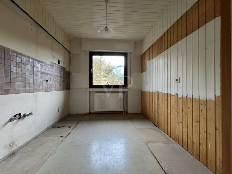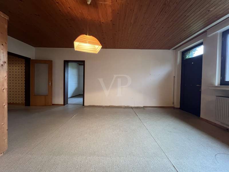 This detached family home from 1977 offers a living space of approx. 133.14 m² with plenty of scope for individual living requirements. The spacious plot of around 901 m² opens up numerous possibilities for development - be it for a green garden oasis, play areas or your own leisure ideas. The total of six rooms are functionally distributed over two floors. On the first floor, you are greeted by an inviting entrance area with space for a checkroom. The light-flooded living room impresses with parquet flooring and a fireplace, which creates a cozy living atmosphere, while the windows open up to the greenery and lead directly onto the balcony and into the spacious garden - where family life becomes the focal point of the house. A stove also provides cozy warmth in the dining area. The adjoining kitchen offers a practical layout - ideal for implementing individual living ideas. Four bedrooms allow for flexible use, for example as parents', children's, study or guest rooms. The bathroom is functionally equipped with a bathtub, shower and washbasin; a separate guest WC completes the space on offer. The basement has high ceilings and a spacious pantry with plenty of storage space. In addition, a bathroom with shower provides practical convenience and additional benefits. The house is in need of renovation, but offers a solid basis for your personal design. A major modernization was already carried out in 2023: Since then, a new gas condensing heating system has ensured an efficient heat supply. The existing wooden windows have double glazing. The spacious plot offers room for individual ideas - from redesigning the terrace to creating retreats or play areas in the greenery. Every member of the family will find their own space here, whether for relaxing, gardening or enjoying nature. Several cellar rooms provide additional storage space. Thanks to the solid building structure and the renovated heating system, the property is suitable for families who want to design their new home according to their own ideas, as well as for couples looking for a house with a spacious garden and individual charm.