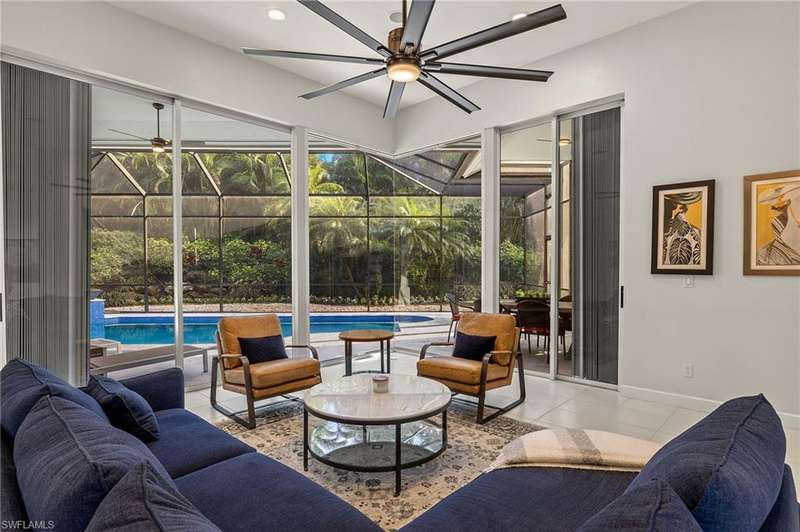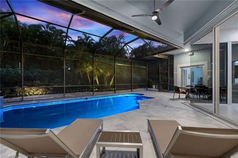 Move in ready and meticulously maintained single-family home in the heart of Pelican Bay. Nestled in a quiet cul-de-sac in an X flood zone, this property offers a serene and lush landscape that creates a one-of-a-kind tranquil retreat. Enjoy the convenience of single-story living in this spacious home, featuring three bedrooms plus den and three and a half baths. The floor plan flows seamlessly around the tranquil backyard pool area, perfect for endless entertaining and relaxation. Designed with entertaining in mind, this home boasts many upgrades, including hurricane-rated glass windows, newer appliances, updated landscaping and landscape lighting, as well as a newly refinished saltwater pool and pool paver area that adds a touch of luxury to your outdoor living space. Located in Pelican Bay, you'll experience the unparalleled Naples lifestyle with amenities such as beach clubs, golf, tennis courts, a fitness center, and tram service to the beach. Enjoy proximity to Waterside shops, t