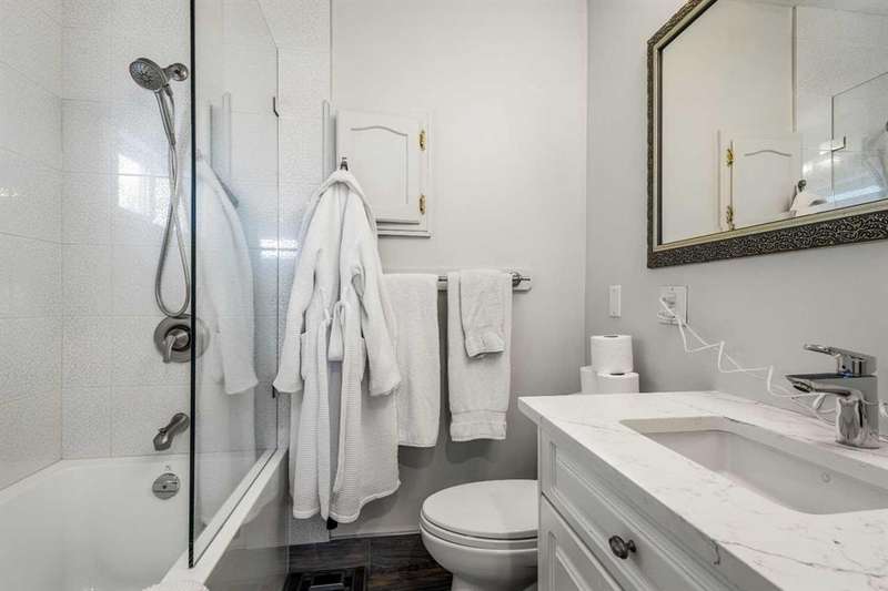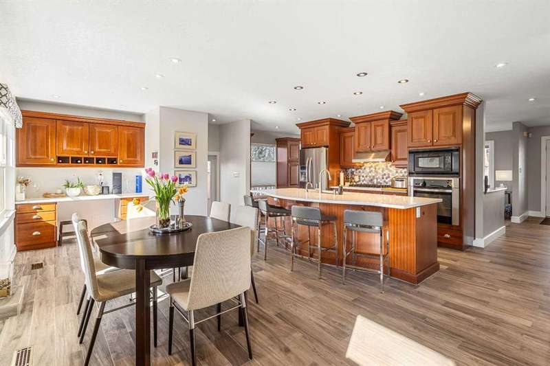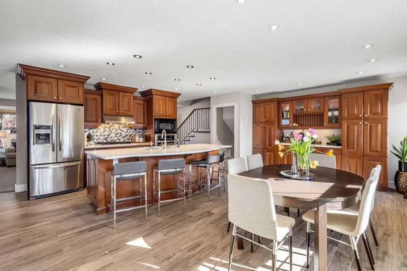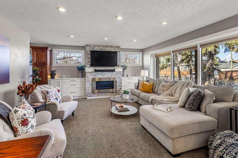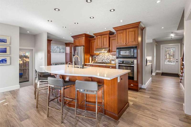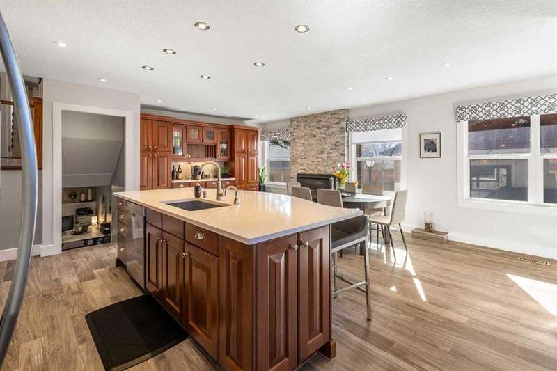 Quick possession available. Welcome to 219 Lake Rosen Crescent SE, a meticulously renovated home ideally situated in a prime location beside the park! Boasting over 2700 sqft of living space, this residence welcomes you with an airy ambiance upon entry. The recently revamped kitchen features abundant cabinet storage, sleek quartz countertops and island, tiled floors, updated fireplaces and modernized appliances. Within the past 10 years, all three bathrooms have undergone renovations, showcasing quartz counters, new vanities, showers, and tub. Throughout the home, newer flooring enhances the contemporary aesthetic. Upstairs, three generously sized bedrooms await, complemented by a fourth bedroom on the lower third level. The conveniently located laundry area has also been tastefully remodeled. The developed basement encompasses a full bath with storage, and a versatile flex room suitable for an additional recreational space, gym or home office! Newer high efficient furnace and AC. The west-facing yard is nicely landscaped with stone patio and right beside a park for ample space for outdoor activities. Completing the property is an oversized double heated garage and paved back lane. This home is close to schools and 2 minute drive to South Centre Mall and convenient c-train ride downtown. All this and lake access for all the fun activities for the kids. Call Today!