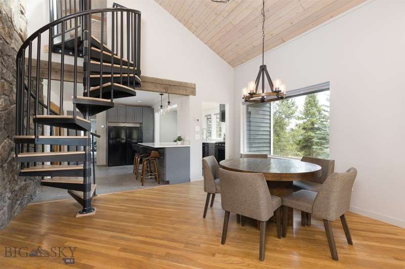 Come see this unique property on 10 acres, with Lone Mountain Ranch ski trails right next door! Located between the Meadow and Mountain Village areas of Big Sky, this three-level home offers five bedrooms, five bathrooms, an entertaining kitchen, and an expansive deck, all in a tranquil, mature tree setting. There are glimpses of the original construction, with timber and rock accents, combined with a flourish of modern updates from a recent remodel. The spacious upper-level room could easily serve as an office, art studio or bonus room. This amazing property is being sold furnished as seen and has the Nordic ski and hiking trail system of the Lone Mountain Ranch adjacent to the property and the resident elk herd is often bedded and grazing onsite. Skiing at the Big Sky Resort is ten minutes away as is fishing and whitewater rafting on the Gallatin River, and the Town Center with all Big Sky area amenities is just down the road, for summer concerts, farmers' market, movie theatre, restaurants and shopping.