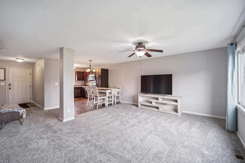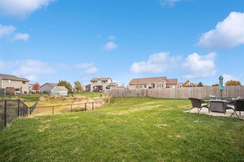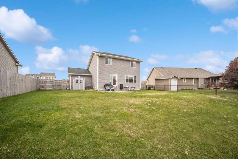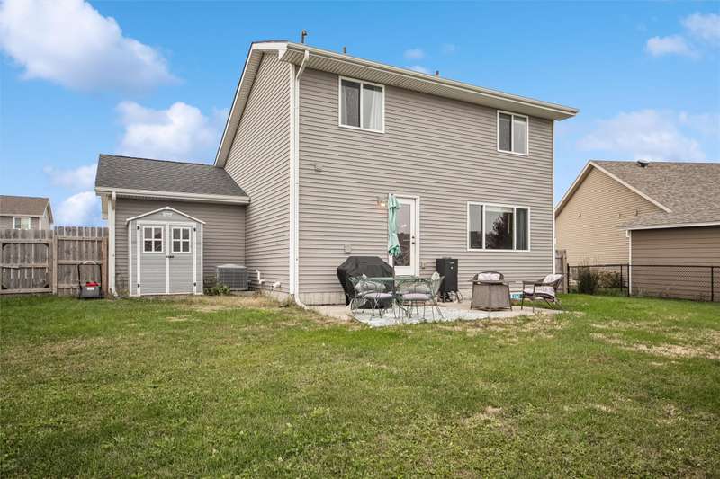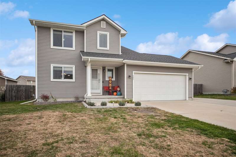 Lovely well maintained 2sty. Awaits you! It is nestled on a quiet tucked away street in growing Bondurant! A cute front porch greets you, Fresh paint, through out. This 3BR, 3 BA boasts Open concept on the main floor. It lends for Kitchen, Dining, Family Room to flow. Great for Family and entertaining. Updates include New Roof, Furnace upgrade, and new basement window. Brand New Carpet installed 2025, premier pet for durability. Glass door to back patio, completely fenced yard, with additional garden space. Creates a relaxing environment, and safety for the Kids and pets. Moving upstairs to 3 BR, New flooring includes LVP and carpet. The lower level has carpeted stairs, that lead to framed-up rooms, and complete electrical installation, ready for the next owner to finish their way. Please note that Ring security remains with sale, and all appliances remain. There is extra concrete parking alongside the 2-car attached garage. It could be used for extra parking, for boats, trailers, campers, and cars. Etc. Please note that this turnkey property will not last. Quick possession. So, let's do Holiday here! Call today!