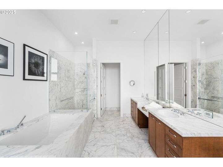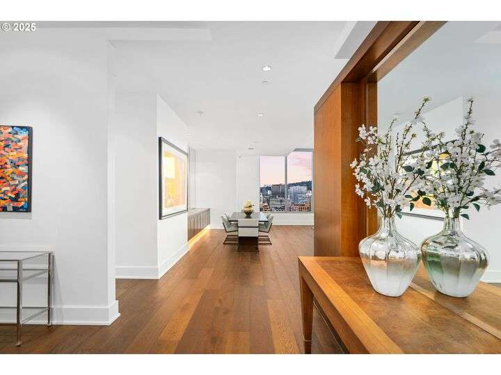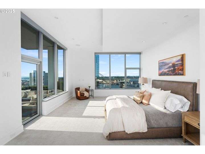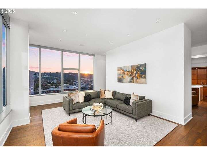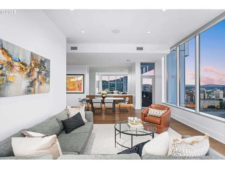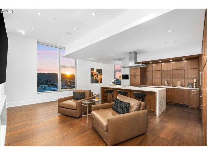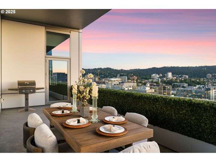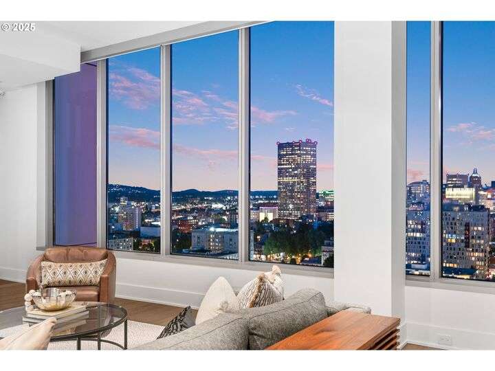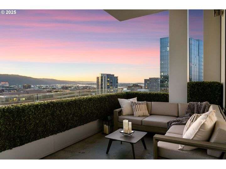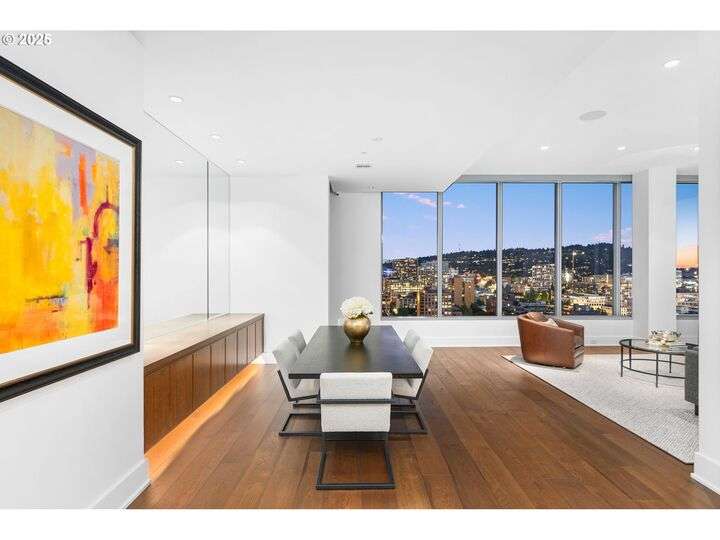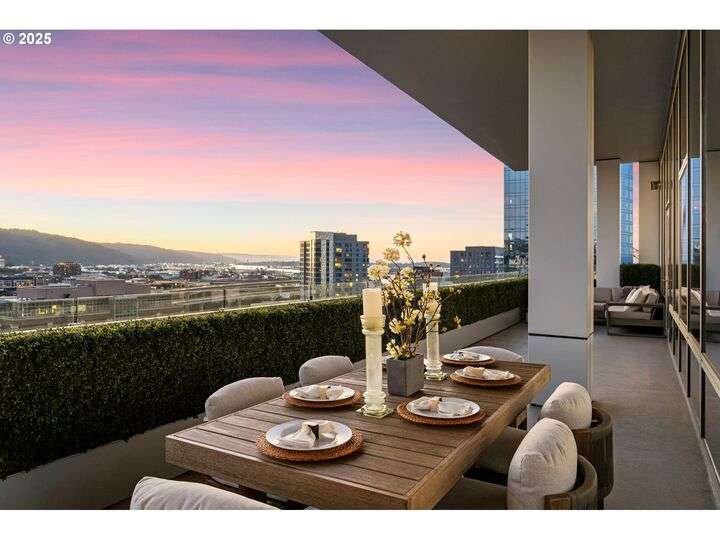 Experience the pinnacle of Portland luxury in this extraordinary penthouse, commanding the western half of the top floor in the iconic Metropolitan Condominium Tower. Walls of glass frame sweeping, unobstructed vistas of the city skyline, the West Hills, Willamette River, and the snow-capped majesty of Mt. Hood, Mt. St. Helens, and Mt. Adams. Awaken to the first light of day as the sunrise bathes the city and Mt. Hood in golden hues, and unwind in the evening with al fresco dining on the expansive western terrace, where sunsets paint the sky in a kaleidoscope of color. Every detail has been painstakingly curated, from custom walnut cabinetry throughout the residence to exquisite slab marble surfaces. A Miele appliance suite, built-in Sub-Zero refrigerator, and dry bar with Sub-Zero wine fridge elevate the culinary experience, while a smart home command center controls the Sonos surround sound and automated blinds. The primary suite offers western-facing views, terrace access, and a spa-inspired bath with oversized soaking tub, walk-in glass shower, and double vanity. A custom-fitted walk-in closet features built-in display shelving with LED lighting and a walnut folding island with additional storage. The study, complete with floor-to-ceiling library shelving and sliding ladder, opens directly to the terrace, blending work, leisure, and breathtaking views. This is more than a residence—it’s a statement of refinement and a rare vantage point above the heart of Portland. 24 hour concierge + Security.