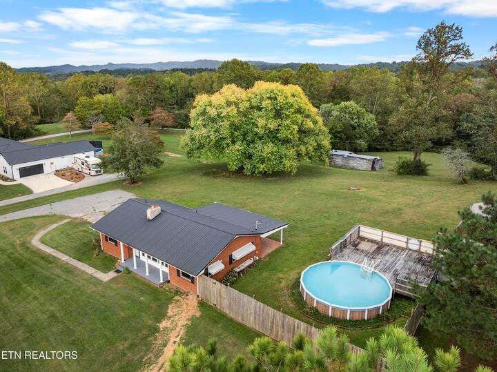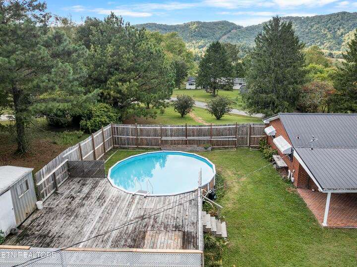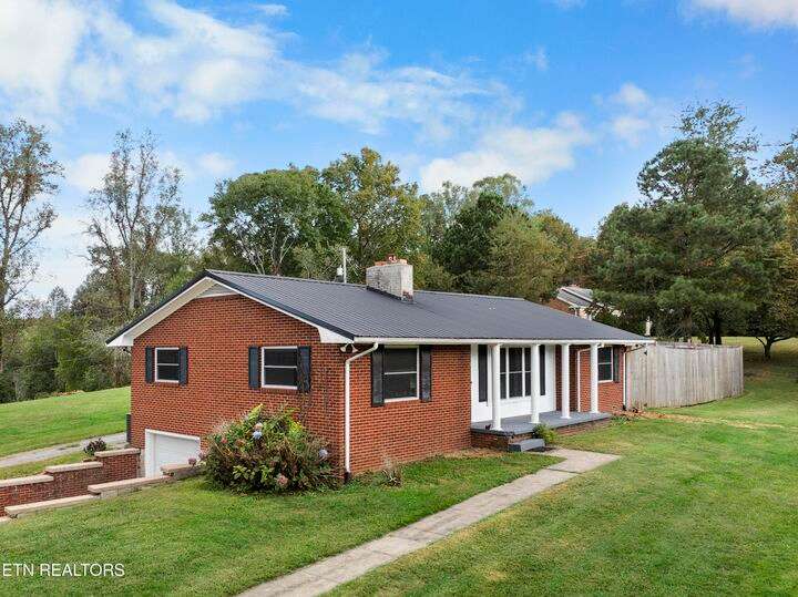 Check out this brick basement rancher sitting on nearly 3 acres of level land! This 3-bedroom, 1.5-bath home features original hardwood flooring and a spacious living room with a wood-burning fireplace, where the large windows frame beautiful views of the Cumberland Mountains. A formal dining area adds to the charm, while a full unfinished basement provides plenty of room for future expansion. The exterior is designed for low maintenance with its durable brick construction and metal roof. Step out back to enjoy the covered porch overlooking the inground pool - perfect for relaxing or entertaining. This home is ready for your vision - add your updates and style to make it uniquely yours. Located just minutes from ATV trails and Norris Lake, this property offers both convenience and potential. Call today for your private tour!