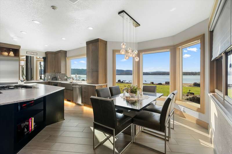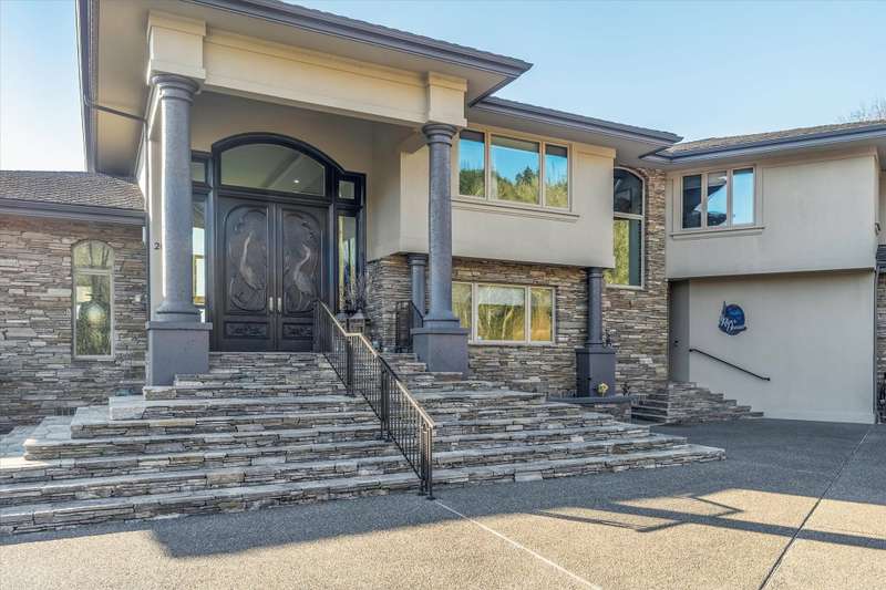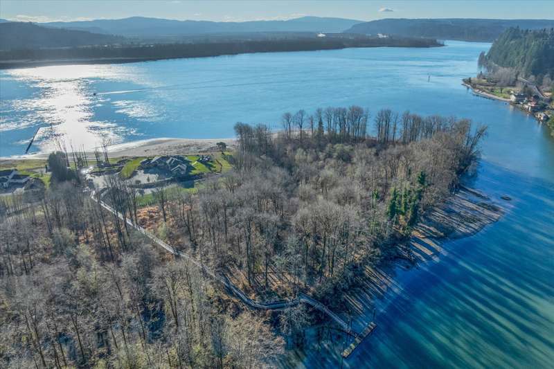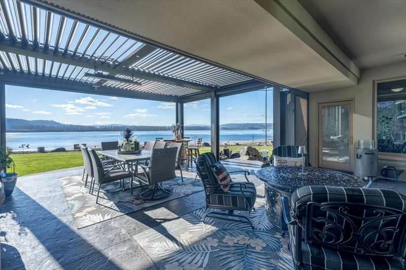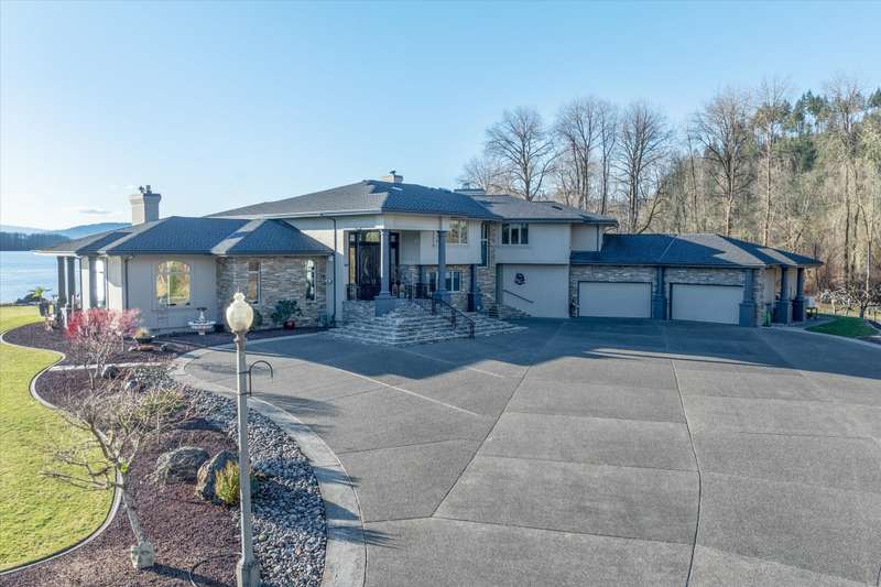 Stunning waterfront estate offers an unparalleled lifestyle, with 16 acres of privacy surrounded by water on three sides. Over 1,000 feet of sandy Columbia River beach and breathtaking views from nearly every room in the 7,280 sq ft home. Picturesque boardwalk leads to the 80-ft long boat dock, ideal for water adventures. Completely remodeled open kitchen is a chef’s dream with 3 ovens, quartz counters, and so much more. River front gazebo is perfect for hosting large gatherings with a full kitchen and the option to enclose-complete with playground, gas fire pit and more. 4 bedrooms, office, 2 versatile flex rooms and 5 bathrooms. Primary suite is an oasis of comfort you'll never want to leave. Garage parking for at least 10 cars and an RV.
