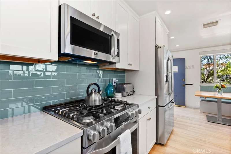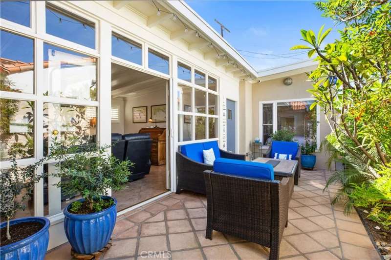 Located in the heart of Naples Island, this pristine 2 bed, 2 bath beach house offers the perfect blend of classic character and modern comfort. Originally built in 1949 and thoughtfully remodeled throughout, the home showcases mid-century design elements, including beamed and vaulted ceilings in the living room and a dramatic stacked-stone fireplace. A private courtyard entry opens to a beautiful outdoor entertaining space, seamlessly connected to the light-filled interior through French doors and a wall of windows. The updated kitchen features stainless steel appliances, custom backsplash, quartz countertops, and a charming built-in banquette dining nook. Both bathrooms boast custom tiled showers, and the two spacious bedrooms include a serene primary suite with attached bath. Move-in ready and just steps from the canals, shops, and diningthis is the ideal coastal retreat!