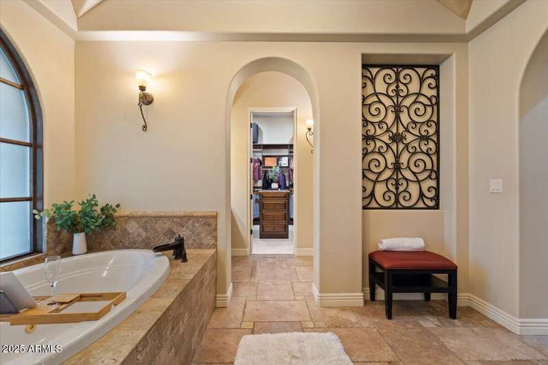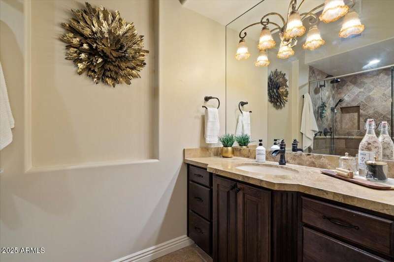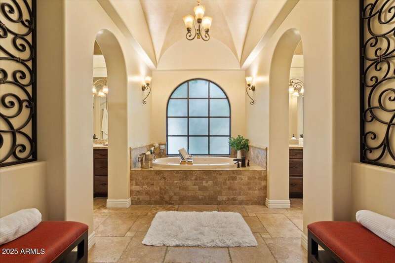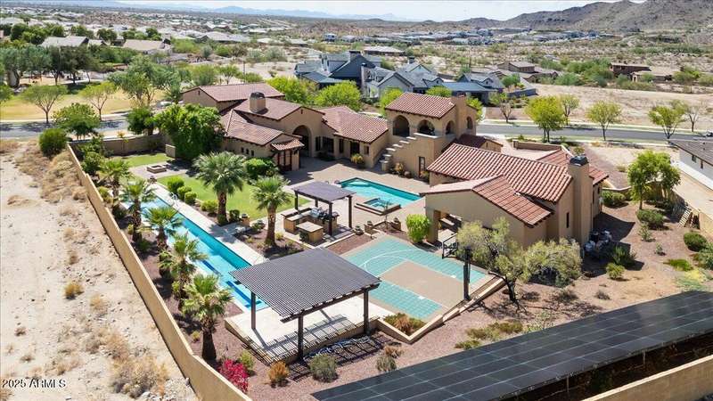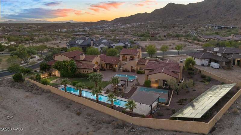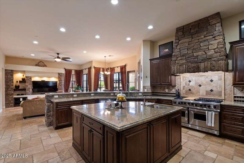 Experience the perfect blend of sophistication, comfort, and resort-style living in this one-of-a-kind custom estate. With 5 bedrooms, 5 bathrooms, and 5,219 sq. ft. of thoughtfully designed living space, this property includes a beautifully appointed main residence and a private detached casita — all set on an expansive lot designed for entertaining and everyday enjoyment. The main home features 3,471 sq ft, 4 bedrooms and 4 bathrooms with open, flowing living areas filled with natural light. Elegant custom drapes paired with matching furnishings, timeless stone accents, and soaring ceilings create a refined yet welcoming atmosphere. The spacious living room centers around a cozy fireplace, while upscale finishes add warmth and style throughout. Step outside into a backyard that rivals