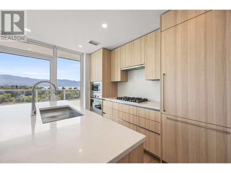 Welcome to Water Street by The Park. To choose this home is to choose a life elevated where the extraordinary is simply your every day. Water Street places you steps from Okanagan Lake, the Yacht Club, and City Park with Kelowna’s finest restaurants & boutique shop moments away. This stunning 2bed 2bath corner residence is a highly sought-after private unit on the 8th floor, offering panoramic views of Okanagan Lake and the bridge, framed by a canopy of lush, mature trees & the vibrant cityscape. With its southeast orientation, this home is beautifully infused with natural light from sunrise to afternoon. Every inch of this home is curated with superior-quality finishes that exude timeless elegance from integrated & stainless steel Fulgor Milano appliances to marbled porcelain tile, premium vinyl plank flooring & bespoke design details throughout. Impress your guests with exclusive access to 42,000 sqft of world-class amenities at The Deck, featuring 23 thoughtfully curated spaces to enjoy, entertain & unwind —including a fitness centre, art studio, kids’ playroom, sauna, steam room, golf simulator, yoga studio, putting green, games room, movie theatre, coworking space, and business centre. Step outside to the expansive terrace with fire pits, BBQ stations, outdoor dining, pool, hot tubs, dog run & dog wash. Plus, enjoy private lounge spaces, a party kitchen, and elegant changing facilities. 1 parking stall. Strata fees & room measurements are approximate. GST has been paid. (id:58403)