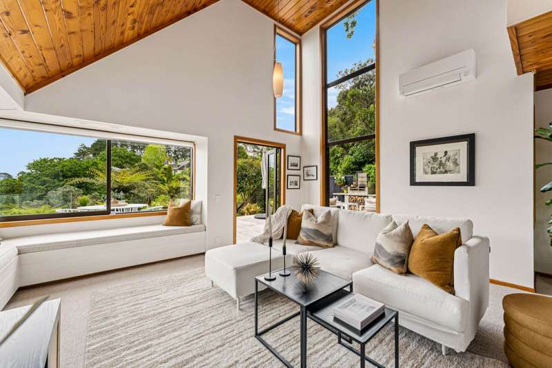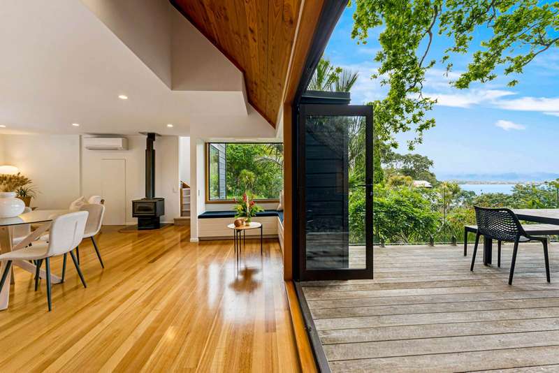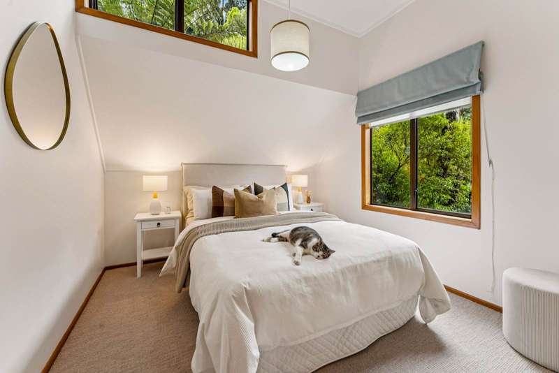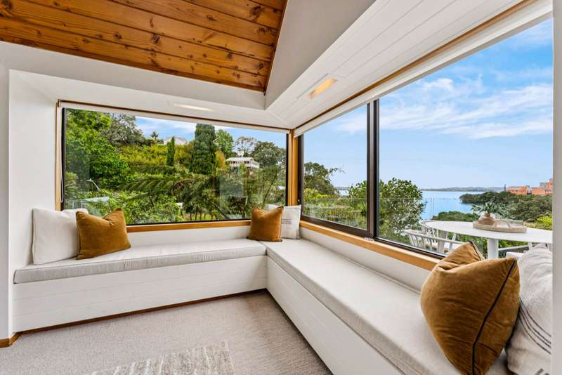 As you would expect, this home is grand and green, breathtakingly poised to render your guests speechless. On approach 29 Telephone Road commands recognition, the rich mix of immaculate black cedar weatherboard standing proudly amongst nature’s accompanying backdrop. A giant Oak canopies this unique dwelling, protecting the perfect patina from the hot sun and acting as a shield from the seaward weather fronts whilst delivering beguiling beauty and birdsong at every aspect of this incredible home. The interior of this five bedroom, three living, three bathroom, double integral garage home is open plan and magnificently spacious. Architecturally designed to embrace the trunk of the resplendent Oak from the inside out, with dazzling success. Soaring ceilings with warm timber tones stand high above a mass of glass, ensuring that the intimate sea views of Chelsea Bay and the Waitemata Harbour are easily visible and constantly vie for attention. A large contemporary kitchen with smooth stone surfaces anchors a huge lounge-diner complete with a central wood burner, whilst the wet bar, atmospheric window seating and lighting add another layer of sophistication. A more formal second lounge, also with an essential wood burner and window seat that creates the ideal reading nook whilst framing the seamless link onto the vast deck with uninterrupted seascape. The detailing continues throughout this remarkable home with three sumptuous bathrooms, all designed to optimise their space with high privacy windows for gazing at the surrounding foliage and sky with tiling and vanities curated for their cohesion. This extraordinary residence has so many places to enjoy company, whether that’s gathered around the fire in the living room or kitchen or sitting in your favourite lounger positioned in the dedicated spot of one of the many decks. Your family and guests will remain steadfast, soaking up the sunshine and sea views. The location of this family home is exceptional. Access to Chelsea Bay beach is literally on your doorstep, along with native bush walks through the Chelsea Heritage Park to the renowned Sugar Cafe. Enjoy the sought after Hinemoa Street community just moments away, plus a stress-free commute via ferry, bus or car to Auckland CBD. Deadline sale: Closes on Wednesday 26 November 2025 at 1:00PM (unless sold prior)