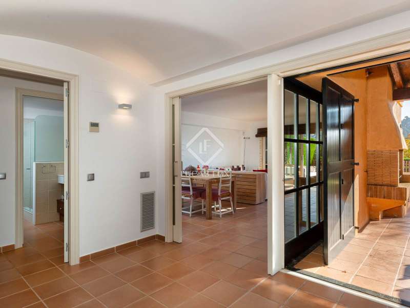Lucas Fox presents this five-bedroom townhouse located in the exclusive community of La Pastora, in Llafranc. This property has a private garden and offers access to a large communal area with a swimming pool, ideal for enjoying the Mediterranean climate. It is located a few steps from the beach and the port of Llafranc, in a quiet area, but close to all the amenities and attractions of this charming coastal town. On the main floor , we have a spacious living-dining room with access to a fantastic terrace, which is very sunny thanks to its southerly aspect. The terrace connects with the private garden that gives access to the communal pool, which is shared by only four homes. On the same floor, we have an separate kitchen with access to a pleasant porch, ideal for family meals and dinners, a double bedroom and a full bathroom . On the upper floor , we find the main bedroom with a private terrace and sea views, a second bedroom with a private terrace and, to complete the floor, two double bedrooms that share a full bathroom . The house has three parking spaces and a storage room, located in the community garage. Please do not hesitate to contact us if you would like more information and to visit this unique property in the area.