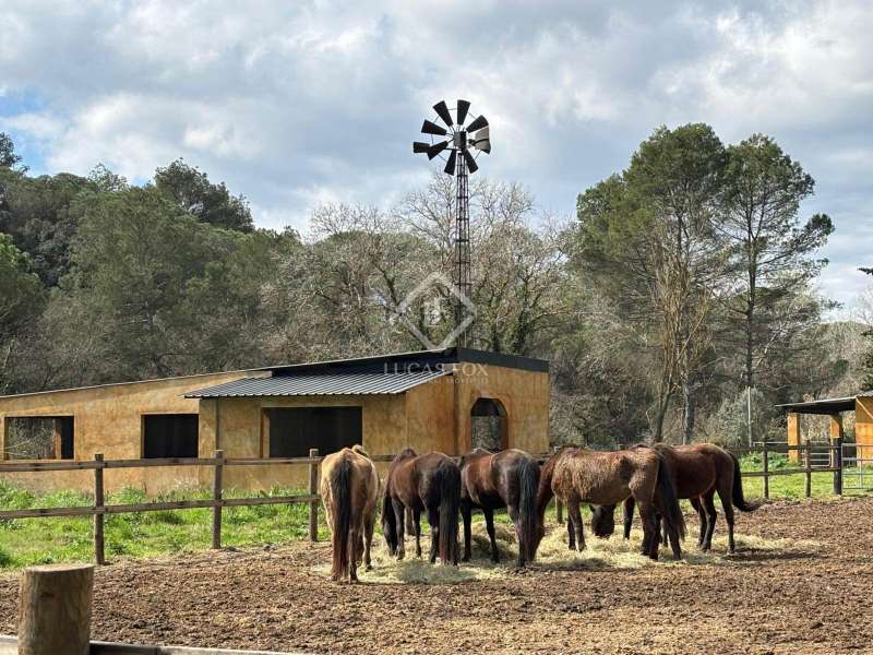 Lucas Fox is pleased to present this magnificent equestrian farm consisting of a two-story house, with gardens, swimming pool and stables for horses with a livestock exploitation permit. This property is distributed in 7 plots that add up to more than 31,000 m2, fully fenced and that form the same parent farm. We access the farm by a private road with an automatic security barrier. Once inside, we find a path that shows the wide terrain and the main gate that connects us with two 15-year-old concrete buildings. A 240 m2 building with stables for horses and storage spaces. The other building is 80 m2. where the guard lived If we continue along the path to the end, we are greeted by a spectacular rustic farm with two floors of 120 m2 each, consisting of a hall, living room, kitchen, 4 bedrooms and 3 full bathrooms, on the outside we find large gardens and a swimming pool. . The farm has oil heating, water, internet and electricity. The plot also offers fruit trees, olive trees and a 100 meter deep well whose water enjoys an extraordinary quality. The privacy of the farm stands out, since there are no nearby neighbors, along with its extreme security thanks to its security surveillance systems by cameras with immediate notification to the police. Access to the farm is restricted to the public. For more information, to make visits and to view the video of the farm, do not hesitate to contact us.